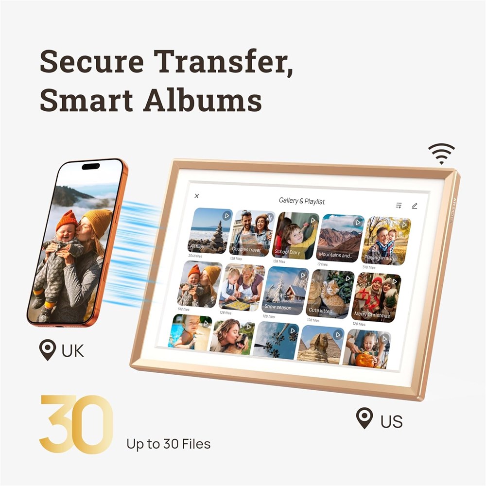 Partage instantan , distance z ro : partagez des photos/vid os tout moment via l'application ARZOPA gratuite (membres illimit s de la famille). Permet sp cialement le transfert vid o HD sans fil de 2 minutes, 32 langues, optimisation du serveur mondial parfait pour offrir comme cadeau CONFIGURATION FACILE : Wi-Fi pr configur pour les personnes non averties en technologie (branchez et profitez). Pr -t l chargez des photos et des vid os de salutation via l'application Arzopa pour des surprises personnalis es avant l'arriv e du cadeau STOCKAGE ILLIMIT + FLEXIBILIT DE LA CARTE SD : T l versez un nombre illimit de photos/vid os gr ce au stockage cloud gratuit. 32 Go d'espace de stockage int gr pour une lecture hors ligne fluide, plus 128 Go TF extensible (non inclus) cran de qualit sup rieure et design intelligent : cran tactile IPS de 10,1" avec technologie anti-reflet pour de vraies couleurs, une luminosit manuelle (jour/nuit) et 30 % d' conomie d' nergie. Fonctions pratiques (m t o, r veil, calendrier, etc.) et le mode veille intelligent offrent une exp rience utilisateur intelligente PARTAGE DISTANCE ET SOUTIEN TECHNIQUE : Partagez instantan ment des photos/vid os depuis votre t l phone, avec des fonctionnalit s amusantes de "j'aime" et de "commentaire", obtenez un espace partag priv . Une assistance d di e r pond dans les 48 heures, fournissant une assistance technique personnalis e.