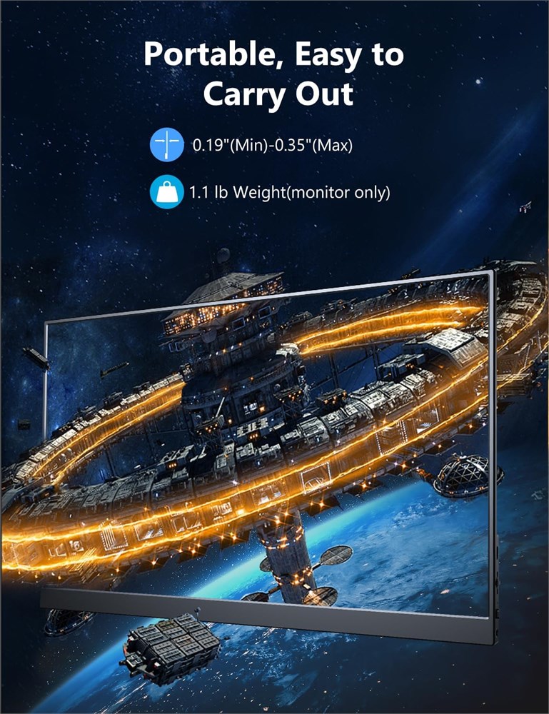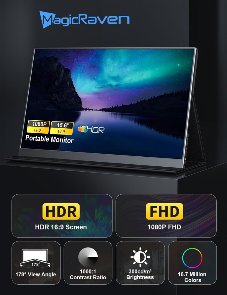cran portable, 15,6" 1080p FHD USB-C HDMI, cran externe HDR IPS protection des yeux avec support pliable, compatible avec ordinateur portable, PC, Mac, smartphone, Xbox, PS5 Switch, consoles de jeu.