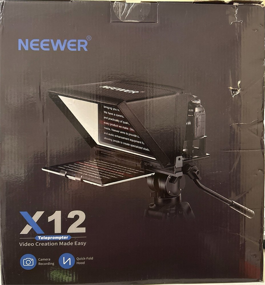 Introducing NEEWER BASICS Simple and practical, NEEWER BASICS is an economical product line that focuses on essential functions and designs, without unnecessary extras and materials. Note: Not for phone shooting Upgraded No Assembly Design NEEWER X12B teleprompter is upgraded with an installation free design for ultimate user friendliness. Made of premium aluminum alloy, it's lightweight yet durable enough to hold your iPad, tablet and camera in place while making videos. The liftable platform and glass make it suitable for various photography equipment by keeping the lens always centered. It is an all in one teleprompter for presentations, online courses, and tutorial recording Intelligent Remote Control This X12B enables intelligent control via the included RT113 remote (AAA battery not included) and the NEEWER Teleprompter App. Pair the remote with your smartphone/tablet in the app via Bluetooth connection, or a direct Bluetooth link from your smartphone/tablet. Simply click to play/pause, adjust scroll speed, turn script pages, and change font size. The RT113 features a black appearance and quiet buttons. The app is compatible with iOS 11.0/Android 6.0 and later Easy to Read with 12" HD Display Thanks to an innovative coating technique, the high quality beam splitter glass ensures 75% light transmittance. With its adjustable hood and leading technology glass, the text on your tablet is clearly reflected onto the 12" high definition display of the teleprompter. The reflected text can be read up to 10ft (3m) away. If you prefer a teleprompter with a bigger screen, check out NEEWER X14, X14 Pro, X14 II, X16, and X17 II teleprompters Foldable & Portable The flip open structure makes it collapsible for easy storage and transport. When not in use, fold it flat and fit it inside the durable carry case for storage and protection.