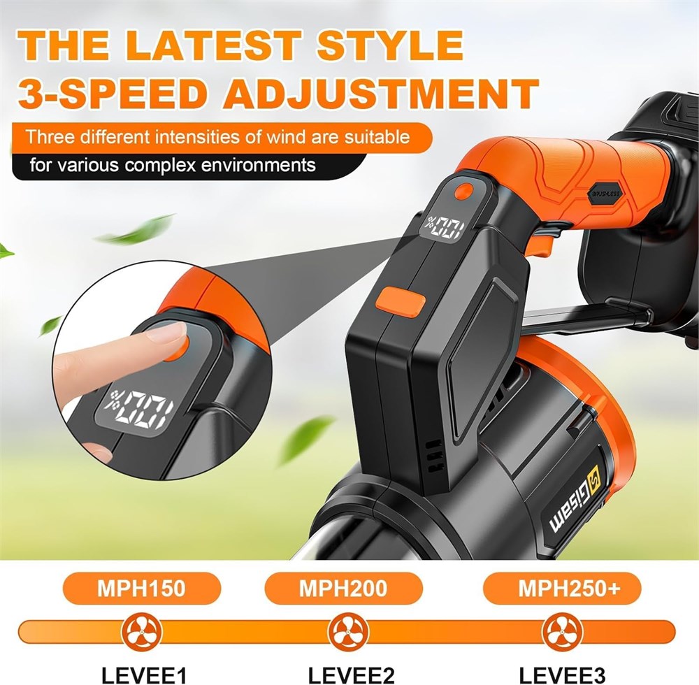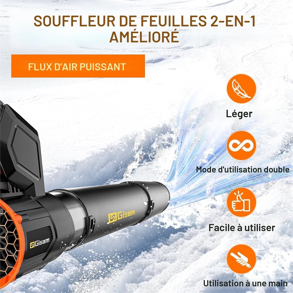 Polyvalence 2 en 1 : contrairement aux mod les monomodes, ce souffleur de feuilles sans fil commute sans effort gr ce sa poign e rotative 180 : souffleur portatif pour les endroits hauts (toits de voiture, goutti res, coins de plafond) et transport la main pour les surfaces au sol (pelouses, all es, trottoirs). Pas besoin d'outils s par s Les propri taires, les jardiniers et les passionn s de voitures peuvent s attaquer aux hauteurs difficiles d acc s et aux grands terrains avec le souffleur de feuilles lectrique. Souffleur de feuilles sans fil 3 vitesses : pourquoi s'en tenir une seule vitesse ? Le souffleur feuilles aliment par batterie vous offre 3 r glages ajustables (241/322/402+km/h) pour s adapter toutes les t ches de nettoyage faible pour d poussi rer les voitures, moyen pour les feuilles l g res, lev pour les tas pais. Avec un d bit d'air de 850 pi /min (1444 m /h), il balaie rapidement les feuilles, l'herbe coup e et les d bris. Facile utiliser, puissant et fiable pour tous ceux qui ont besoin d'un souffleur turbo jet robuste. Batterie longue dur e : ce souffleur de feuilles sans fil contient 2 batteries de 6,0 Ah, offrant une autonomie impressionnante de 3 heures, id al pour l'entretien prolong de la pelouse ou comme souffleur jet turbo. De plus, un chargeur rapide est inclus, le rechargeant compl tement en seulement 1 heure. Encore mieux. Moteur sans balais de 900 000 tr/min : Ce moteur est con u pour votre souffleur feuilles aliment par batterie - 900 000 tr/min de puissance constante et sans fatigue qui le transforme en un souffleur turbo jet exceptionnel. La conception sans balais augmente l'efficacit du flux d'air de 30 % (r duit le temps de nettoyage de l'all e de moiti ) et diminue l'entretien, garantissant que votre souffleur feuilles sans fil reste performant pendant des ann es. Parfait pour les souffleuses feuilles usage intensif pour les t ches d'entretien des pelouses. Design ergonomique l ger : seulement 3,5 lb plus l ger que la plupart des souffleurs feuilles lectriques ce souffleur feuilles aliment par batterie dispose d'une poign e profil e antid rapante pour une utilisation facile d'une seule main comme souffleur portatif. Plus besoin de vous fatiguer ! Parfait pour les personnes g es qui utilisent des souffleurs pour l'entretien de la pelouse ou les nouveaux jardiniers. Utilisez ce souffleur de feuilles sans fil confortablement pendant des heures. Design 3 buses : ce souffleur de feuilles sans fil g re tout, du nettoyage grande chelle l'entretien d taill , id al pour les souffleurs pour l'entretien de la pelouse. La buse plate balaie les feuilles sans endommager le gazon, la buse incurv e atteint les espaces des parterres de fleurs, et la buse ronde nettoie les espaces des outils. Associez-le au mode souffleur portatif, et vous obtenez un souffleur feuilles lectrique qui couvre tous les travaux. S curit fiable : ce souffleur de feuilles sans fil est construit dans un souci de s curit , il comprend des fonctionnalit s indispensables pour tout souffleur de feuilles lectrique : un bouton de verrouillage pour viter les d marrages accidentels (essentiel lors du transport de votre souffleur de feuilles aliment par batterie), et une base qui dissipe la chaleur rapidement, vitant la surchauffe m me lors d'une utilisation prolong e en tant que souffleur jet turbo. Nettoyez en toute confiance, pas de soucis de s curit .