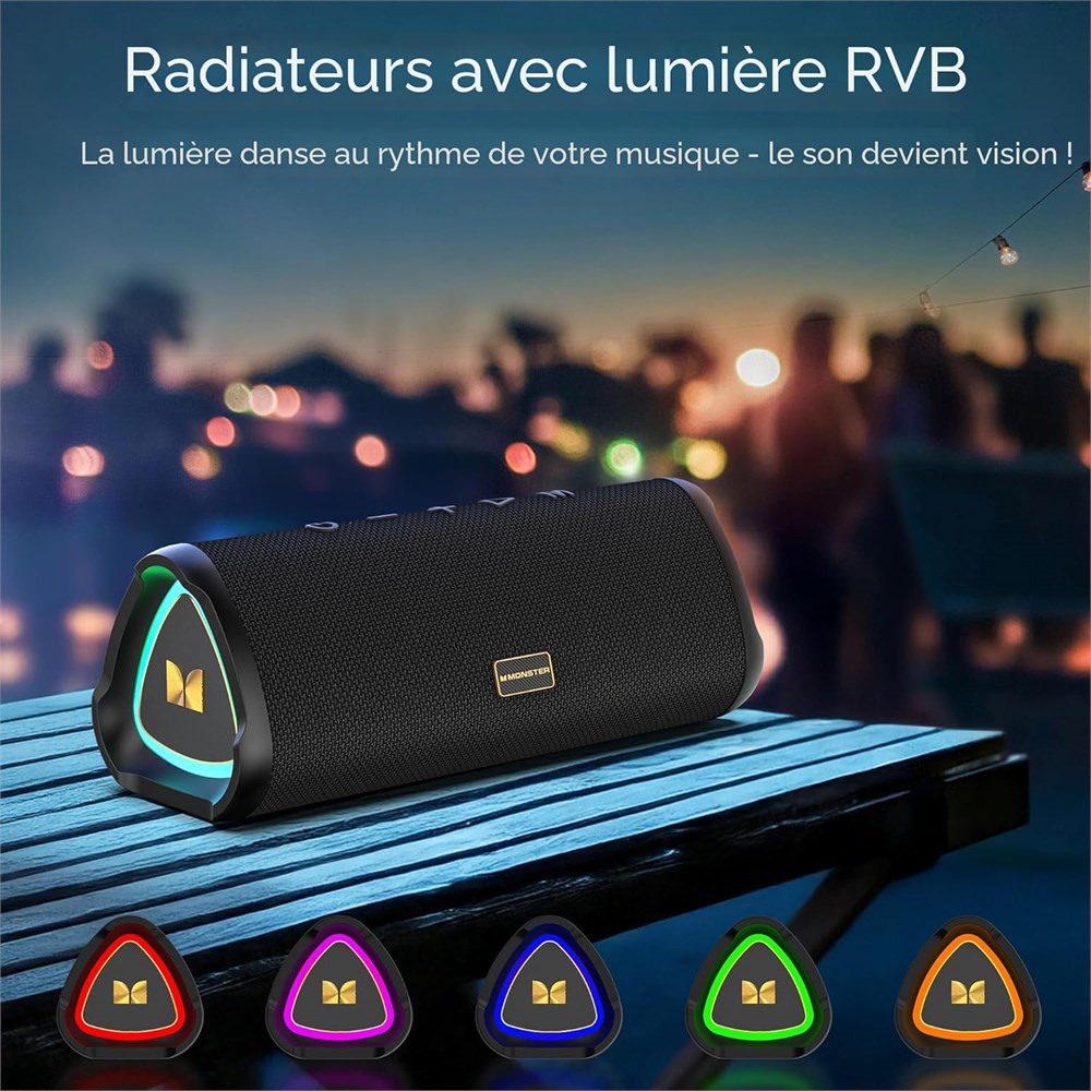 Son st r o 20W Avec une sortie sonore de 20W, le haut-parleur Bluetooth Prism offre un audio st r o complet et vibrant avec des couches riches et des d tails nets parfait pour une exp rience d' coute immersive. V ritable st r o sans fil : associez deux haut-parleurs Bluetooth sans fil via TWS pour les synchroniser en tant que canaux gauche et droit, offrant un son surround immersif id al pour les cin mas maison, les jeux et les r unions de groupe. tanche IPX6 robuste Avec une tanch it IPX6, le haut-parleur Prism g re facilement les claboussures et la pluie, assurant une lecture ininterrompue au bord de la piscine, sur la plage ou pendant les activit s de plein air. Lecture multi-sources : le haut-parleur portable sans fil prend en charge le Bluetooth 6.0, l'entr e auxiliaire et la carte TF (MP3/WAV), permettant une commutation fluide entre les appareils et les formats pour s'adapter n'importe quel sc nario d' coute. Design de cordon portable Ce haut-parleur est livr avec une lani re d tachable qui se clipse sur votre sac dos, votre ceinture ou vos guidons, ce qui permet de profiter facilement d'un excellent son en randonn e, v lo ou en d placement. Port USB-C et longue dur e de lecture : avec sa compatibilit avec le port USB-C, le haut-parleur portable se recharge enti rement en 2,5 heures et offre jusqu' 24 heures de lecture 50 % de volume, gardant la musique toute la journ e. Effets de lumi re ambiante D une simple pression, les lumi res LED ambiantes du haut-parleur Bluetooth sans fil pulsent au rythme de votre musique, apportant un clairage dynamique et vibrant aux f tes, aux randonn es et aux sorties la plage.