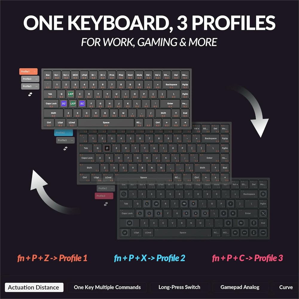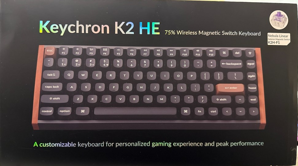 Premium Build & Quiet Typing Experience: Crafted with double-shot PBT keycaps and natural rosewood siding, the K2 HE combines durability with elegant aesthetics. Its all-aluminum frame and double-gasket design absorb keystroke noise, delivering a smooth, quiet feel perfect for home offices and late-night gaming sessions. Tri-Mode Connectivity & Multi-Device Flow: Seamlessly switch between ultra-fast 2.4GHz (1000Hz polling), Bluetooth 5.2 (3 devices), or USB-C wired mode. Effortlessly toggle from a MacBook to iPhone to gaming PC no re-pairing needed. Ideal for hybrid work and competitive play. Launcher Web Configurator: No Software, Total Control. Customize every key directly in your browser: remap shortcuts, create macros, or adjust RGB effects via Keychron Launcher. No downloads required optimize settings in 2 minutes for work or FPS games. Pro Gaming Edge: Rapid Trigger & 0.1mm Tuning. Dominate fast-paced games with Rapid Trigger tech: keys activate/reset by travel distance, not fixed points. Fine-tune actuation from 0.2-3.8mm (0.1mm steps) set shallow presses for instant jumps or deep presses for deliberate actions. South-Facing RGB & Hot-Swap Magnetic Switches: Vibrant south-facing RGB shines through keycaps without glare, while pre-lubed Gateron magnetic switches offer plug-and-play customization. Swap switches in seconds no soldering! Magnetic Switch of Advanced TMR Sensors: Equipped with cutting-edge Tunneling Magnetoresistance (TMR) technology to detect precise distance and magnetic field variations through subtle resistance shifts. Every key features a dedicated TMR sensor for superior resolution, delivering pinpoint accuracy, ultra-low latency, and an unparalleled magnetic switch input experience. Magnetic Field Sensitivity: up to 100 mV/V/Oe.
