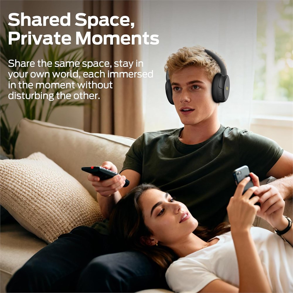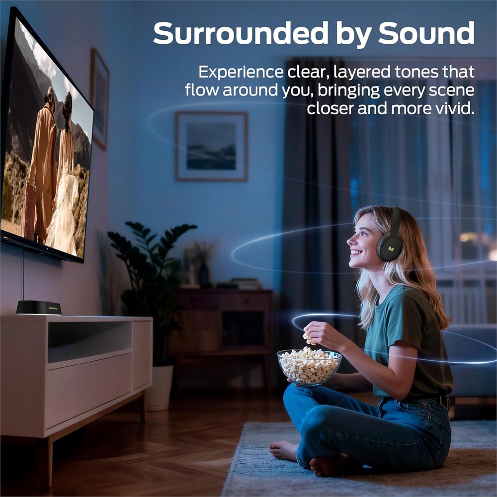 Plug & Enjoy Effortless Setup Simply connect the transmitter to your TV with the included optical, AUX, or RCA cables and power on no complicated pairing steps. The wireless headphones for TV are perfect for seniors or anyone who prefers a quick, frustration-free setup. Get clear, perfectly synced audio in just minutes after unboxing. Smooth & Lag-Free Connection Equipped with Bluetooth 5.3, the TV headphones deliver ultra-low latency under 40ms for perfect audio sync. Whether you're watching a fast-paced action movie or your favorite sports game, every sound stays perfectly in sync with the visuals, delivering a truly immersive experience. All-Day Comfort & Foldable Design Soft protein ear cushions and an adjustable headband provide a secure yet lightweight fit, perfect for long TV sessions. The foldable design makes it easy to store and carry ideal for travel or home use. Long Battery Life with Easy Charging Enjoy up to 45 hours of playback on a single charge. When you re done watching, simply place the over-ear headphones on the transmitter base to recharge automatically no cables, no hassle, always ready for your next show. Private Listening, Perfect for Families Watch your favorite dramas or late-night talk shows without disturbing others. The wireless TV headphones create a personal sound zone, letting you enjoy crisp and balanced sound while your family rests peacefully. A thoughtful gift choice for parents and seniors who love watching TV.