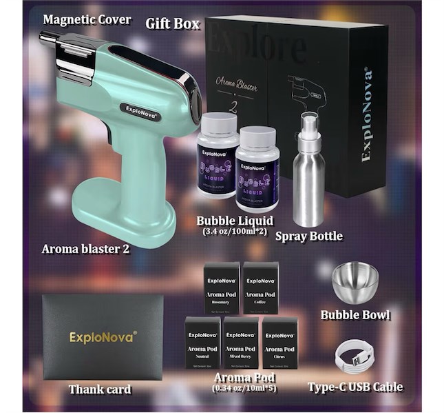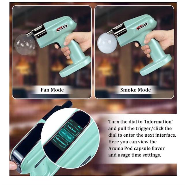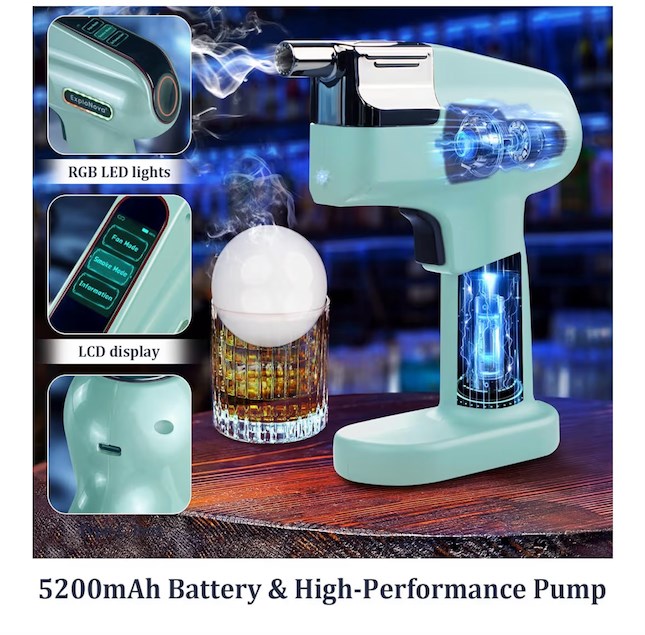 Aroma-Infused Smoke Bubbles Create food-grade, flavored smoke bubbles for cocktails, whiskey, bourbon, champagne, and more with the cocktail smoke bubble gun. This bartender's assistant adds a touch of magic to every drink, with stunning visual and sensory effects. Compact & Convenient Enjoy the freedom of using the vapour blaster cocktail gun without needing a power cord. It s perfect for bar counters, outdoor picnics, and family gatherings, bringing smoky cocktails and dishes to life. Don t forget to wet the cup rim with the included spray bottle for longer-lasting bubbles. Package Contents 1 x Aroma Blaster 2 Cocktail Gun, 5 x Aroma Pods (Rosemary, Citrus, Coffee, Neutral, Mixed Berry), 2 x Bubble Liquid (200ml), 1 x USB Type-C Charging Cable, 1 x Bubble Bowl, 1 x Spray Bottle, 1 x Thank You Card, 1 x User Manual. Perfect for Any Celebration This bubble smoke gun makes a fantastic gift for weddings, housewarmings, anniversaries, Christmas, Thanksgiving, and birthdays. Give the gift of a unique, memorable experience. Shop for Refills Stock up on Aroma Pods and edible bubble liquid in our store to keep your bubble smoke gun in action and your drinks and dishes bursting with flavor.