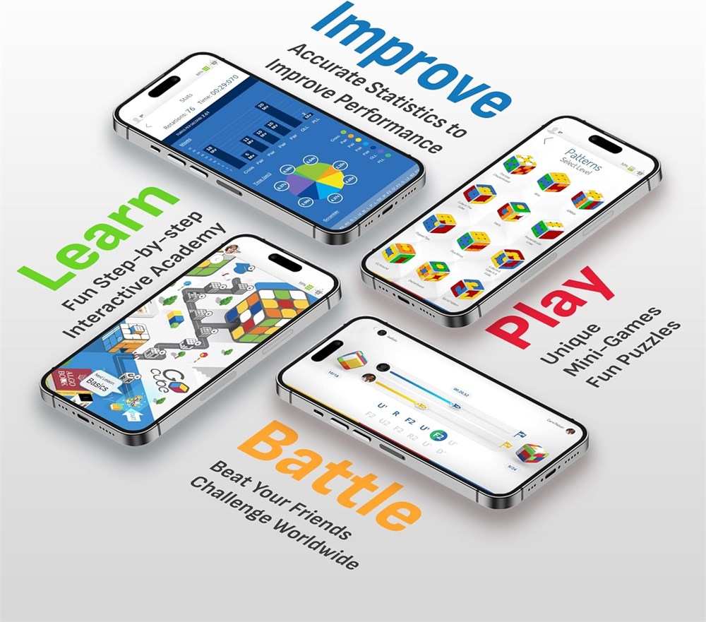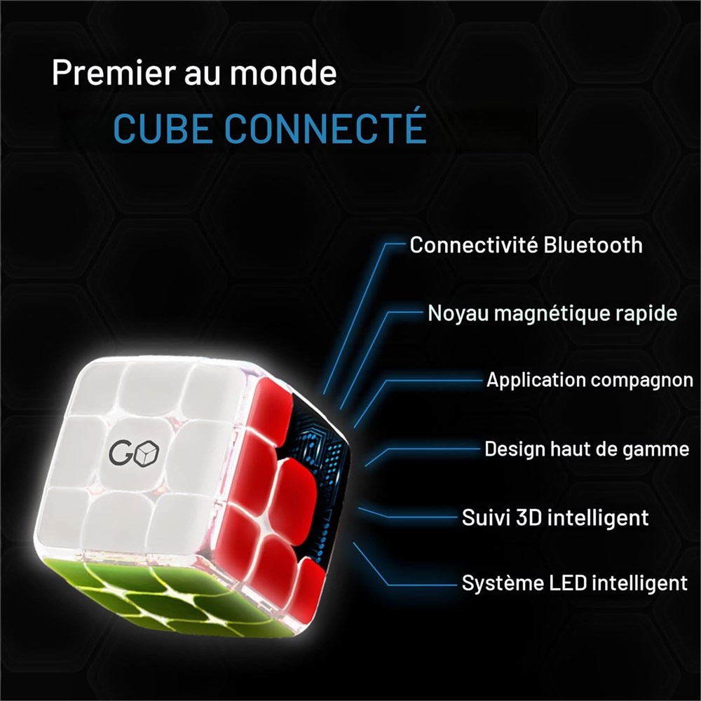 Une nouvelle g n ration de cubes connect s : ce cube de vitesse intelligent Bluetooth apporte une nouvelle touche attrayante et fluide au puzzle classique. Chargez rapidement, connectez-vous et laissez l'application vous guider travers des le ons passionnantes, des jeux, des comp titions en ligne et des exercices mentaux avec des amis et des cubers du monde entier. La meilleure fa on d'apprendre enfin r soudre le cube Pas d'exp rience ? Pas de probl me Ce gadget prim est con u pour vous aider le compl ter en un rien de temps! Un didacticiel interactif amusant tape par tape, avec une nouvelle exp rience connect e, suivant vos progr s et vos erreurs chaque tape. L'application compagnon gratuite se connecte votre GoCube, afin que vous puissiez voir vos progr s sur l' cran en temps r el. Ne vous contentez pas de r soudre le cube. Ma trisez-le! CONNECTEZ-VOUS AVEC VOS AMIS - Jouez en temps r el et affrontez des amis et des joueurs du monde entier. Peu importe votre exp rience ou votre niveau, il existe diff rents modes de combat et jeux pour toutes les comp tences et capacit s. Innovant et ducatif : le GoCube enseigne les principes fondamentaux de la r solution de probl mes et d veloppe la conscience spatiale. Livr avec un ensemble de mini-jeux pour encourager les comp tences de m morisation et la coordination il-main. Nous recevons des retours constants sur l'impact que GoCube a sur le d veloppement de l'estime de soi et de la confiance - rejoindre le club exclusif des personnes intelligentes qui peuvent r soudre le cube , l'un des aspects les plus gratifiants pour les parents et les joueurs. Qualit sup rieure et cadeau : emballage prim (avec exp rience unique de d ballage), qualit sup rieure, syst me de lumi re, mat riaux de qualit sup rieure. Livr avec un ensemble complet d'accessoires (support de charge, c ble de charge, pochette de transport) et une garantie d'un an. R compens par le Mom's Choice, le Parent's Choice et le Tillywig Toy (Brain Toy). L'un des MEILLEURS CADEAUX TECHNIQUES (WSJ) et Meilleurs jouets STEM deux ann es cons cutives (WIRED). Consultez nos toiles et valuations!