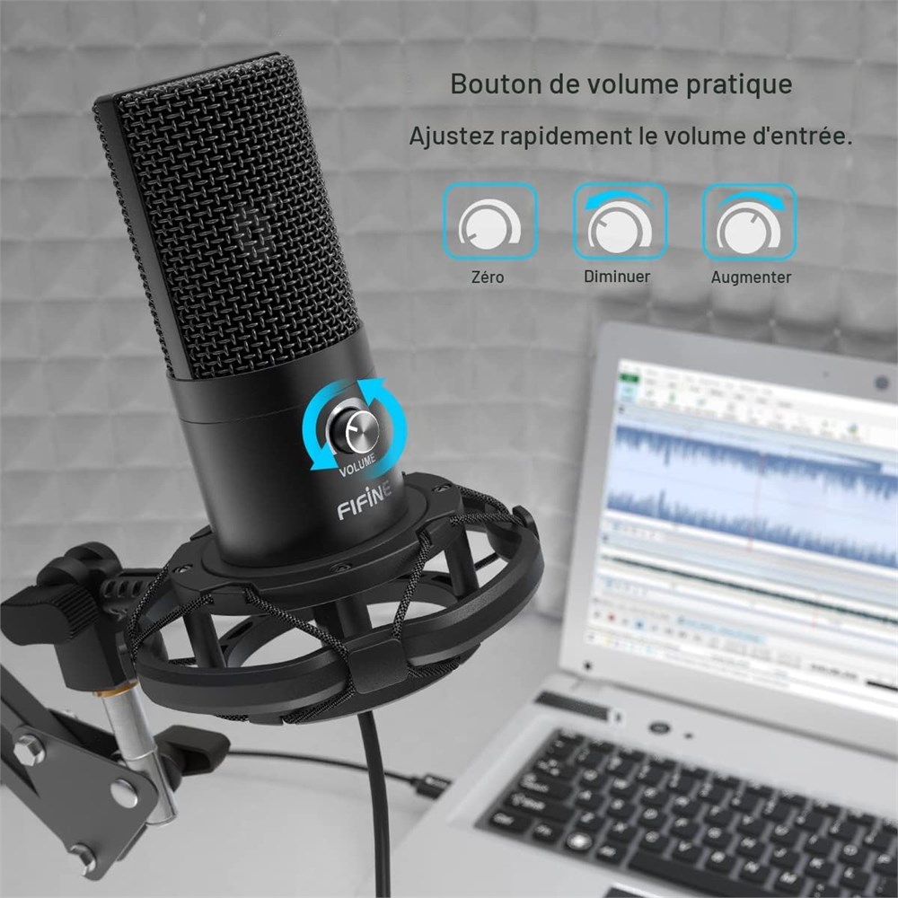 Micro USB Plug-and-Play Se connecte n'importe quel appareil Mac ou Windows. Permet une installation simple. Kit de microphone d'enregistrement brancher et utiliser pour les voix, aucune installation de pilote requise. Id al pour l'enregistrement de projets, les podcasts, l'enregistrement sur le terrain, et partout o un microphone condensateur USB de qualit est n cessaire. (Incompatible avec Xbox et t l phones) Kit de micro de studio avec contr le de gain Vous offre d'excellents outils pour capturer votre voix dans un podcast ou une voix off. Le microphone PC condensateur dispose d'une r ponse en fr quence chaude et tendue pour une voix et un instrument fluides. Un mod le polaire cardio de pour un contr le minimal du bruit et de la r troaction. Le pack de microphones est id al pour le streaming, les jeux, le studio domicile, la messagerie instantan e, les appels vocaux et la cr ation de vid os pour YouTube. Bras de suspension pour microphone Fournit un placement rapide et pratique du microphone de bureau. Le style de pince de table est universel et se fixe sur les surfaces horizontales et verticales comme un bureau, une table, une tag re ou un comptoir. Le set de microphone est con u pour les microphones USB montage sur table avec stabilit , r glage facile et faible visibilit pour les annonceurs, les interviews et les DJs dans la diffusion, la t l vision sur Internet et la radio. Ensemble de bras durable : le support de microphone de jeu robuste avec ressort super puissant prot ge le micro des tremblements, des chutes soudaines et du bruit. Livr avec une pince de montage de bureau avec couche protectrice en mousse, une vis de positionnement r glable, le microphone avec bras articul peut facilement se fixer sur tout bord de bureau jusqu 5,3 cm d paisseur. Ce que vous obtenez : 1 microphone pour l'enregistrement de podcast ; 1 tr pied bras oscillant enti rement en acier ; 1 support anti-choc compact ; 1 filtre anti-pop double couche ; 1 bonnette en mousse ; 1 c ble USB premium de 2,5 m ; 1 manuel d'utilisation et un support technique amical. (Assistant id al pour les podcasteurs, musiciens et joueurs.)
