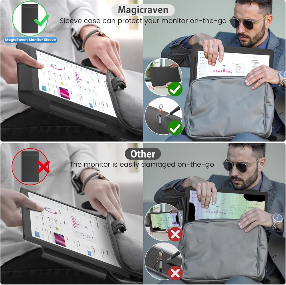 Construisez votre poste de travail : l'extension d' cran MagicRaven vous aide travailler plus rapidement et plus facilement en affichant plus de fen tres en m me temps. Vous pouvez utiliser plusieurs logiciels sur plusieurs crans en m me temps au lieu de changer constamment de logiciel sur un seul cran. Parfait pour les personnes qui veulent construire une station de travail comme les professionnels de l'informatique, les commer ants, les programmeurs, les joueurs, les joueurs de jeu, etc cran IPS exceptionnel : l'extension d' cran MagicRaven pour ordinateur portable est quip e d'un cran IPS FHD de 14 pouces associ une r solution de 1920 x 1080, une luminosit de 300 nits, un rapport de contraste de 1000:1 et 100 % sRGB pour une clart d'image sup rieure, vous offrant une exp rience visuelle lumineuse, vive et immersive. L' cran amovible peut pivoter 250 , vous permettant de personnaliser l'exp rience de visualisation selon vos pr f rences Portable et conomise de l'espace sur le bureau : ne pesant que 0,9 kg, le deuxi me cran MagicRaven pour ordinateur portable peut facilement grimper sur votre ordinateur portable et devenir un deuxi me cran sans espace de bureau suppl mentaire. Il se glisse facilement dans le sac de transport (colis inclus), de sorte que vous pouvez l'emmener la maison, en voyage, au bureau, dans un caf , un h tel, un a roport, une cour, etc. Parfait pour les personnes qui travaillent et jouent en d placement ou la maison. Plug and Play : Plug and Play avec un seul c ble, pas besoin de t l charger quoi que ce soit. Avec les m thodes de connexion USB-C/HDMI (tous les c bles dans le colis), il peut fonctionner avec la plupart des ordinateurs portables de 14 16,5" avec Windows, Mac, Chrome, Android, Linux, Dex et Switch. Remarque : lorsque vous utilisez le c ble HDMI, veuillez connecter notre moniteur l'adaptateur d'alimentation Service fiable : MagicRaven s'engage donner vie la technologie et aux services, c'est pourquoi nous offrons un service client 24h/24, 7j/7, une garantie de 3 ans, un support vie. Un choix fiable et rentable.