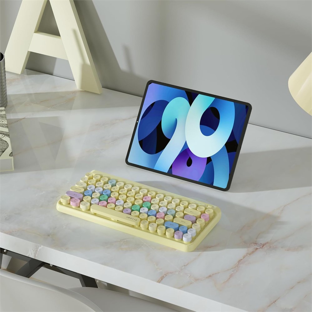 Superbe design color et ne se d colore pas : chacun est con u avec des couleurs multicolores pour vous aider tre distinctif au bureau. Et vous n'aurez plus vous inqui ter que la couleur s'estompe avec cette nouvelle version 2020. Capuchons ronds r tro Vous gardez la machine crire de votre grand-p re ? Vous trouverez quelques souvenirs de cet adorable clavier. Compatible avec Windows, Mac OS, iOS et Android : vous trouverez qu'il est tr s pratique de taper un message ou d' diter un document l'aide de ce clavier portable sur votre t l phone portable ou votre tablette. Technologie de connexion Bluetooth stable : puce Broadcom et port e de connexion de 10 m, rapidement reconnect e, mise en veille automatique et conomie d' nergie. En cas de probl me, veuillez nous le faire savoir temps et il vous sera envoy un tout neuf.