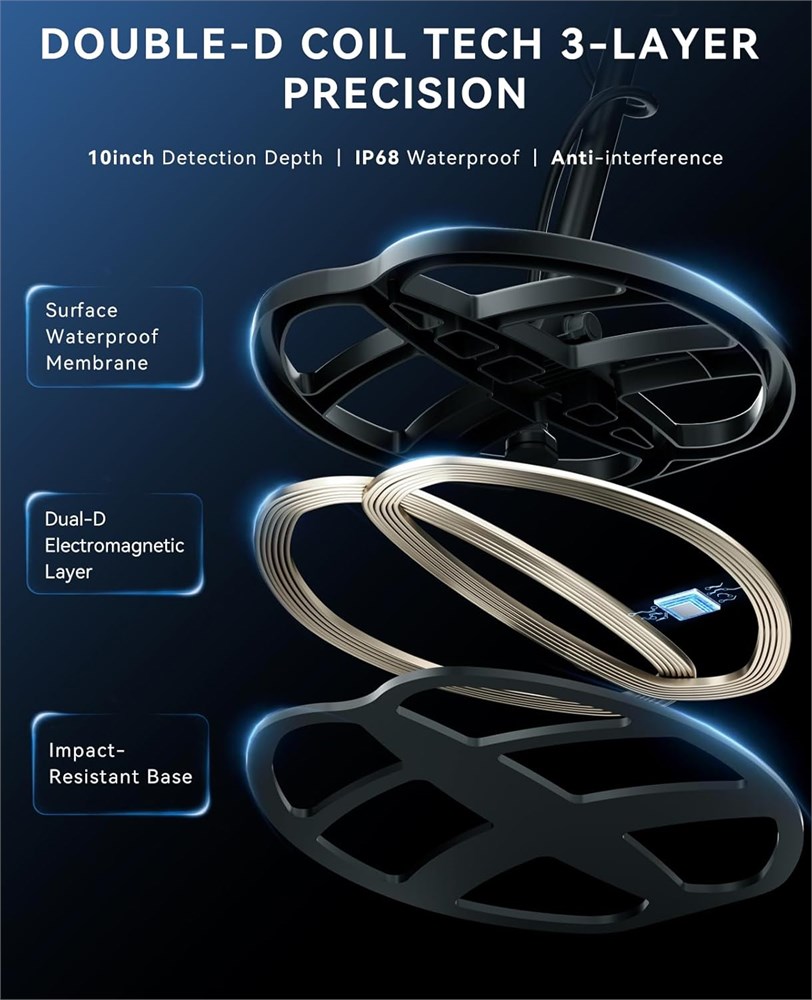 High-precision detection SUNPOW professional adults metal detector's larger coil covers a larger area with each scan, allowing you to cover the ground faster. The built-in upgraded DSP chip is 40% more accurate, with stronger detection stability, and will not lose the target due to fast speed. It can locate a quarter coin up to 12 inch underground. 5 Professional Modes The adults metal detectors has 5 detection modes, which will allow you to accurately and efficiently find various metals such as coins, artifacts, jewelry, and gold. All Metal: Notifies you as soon as any metal is found. Disc: Allows you to distinguish the detected metal form and ignore the garbage. Innovative Memory Mode: Lets you focus on a single metal type. Jewelry: Lets you focus on finding jewelry. PP: Enables you to pinpoint the target, saving you time. Easy to install & use This lightweight metal detector has an upgraded collapsible cam lock design and screw-less main head to make assembly effortless. Equipped with a 2X larger backlit display for easy reading, silicone comfort buttons, and soft elbow support for one-handed operation. With the built-in on/off memory function, you don't need to reset the detector every time you start it. Multiple Adjustable Designs Equipped with 5 sensitivity adjustments to reduce unnecessary beeps, the professional adults metal detector allow you to focus on the real discovery. 3 Volume levels to adapt to various environments. With an adjustable length from 27 to 56 inches and a handle from 0 to 8 inches, it s perfect for adults and children of different heights, so that you and your family can easily explore and share the fun of treasure hunting no matter what the environment is. IP68 Waterproof Search Coil Rechargeable Professional adults metal detector's IP68 waterproof rating allows you to explore on outdoor adventures such as beach walks and shallow water searches. (Note: The controller is not waterproof).