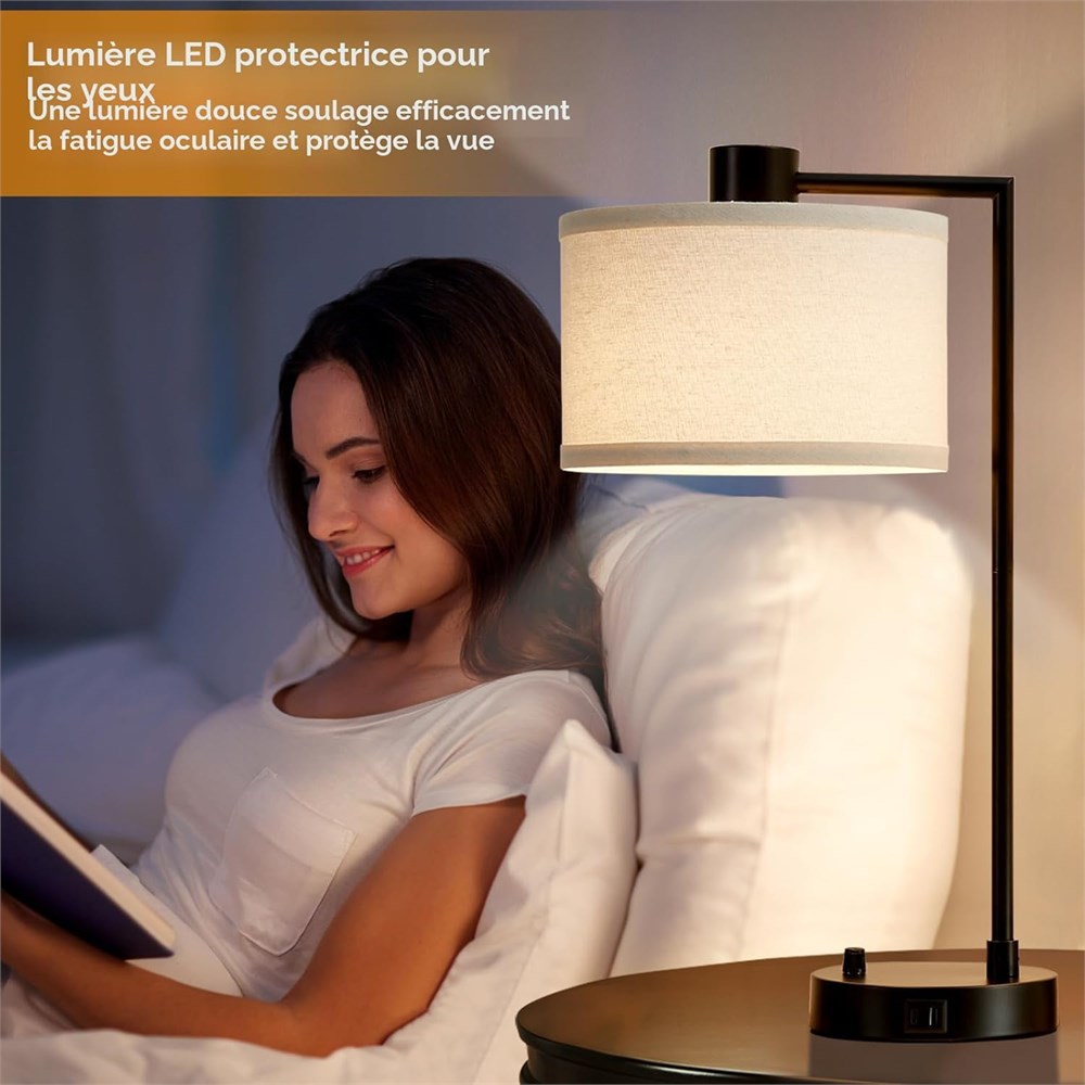 Variation progressive am lior e : il suffit de tourner l'interrupteur pour choisir 0 100 % de luminosit diff rente selon vos besoins, utilisez la plus lumineuse pour la lecture, le travail et la plus basse pour la cr che, la m ditation et les soir es cin ma. Facile utiliser pour tous, m me pour les enfants et les personnes g es. Cadeau parfait pour les festivals, les anniversaires et les pendaisons de cr maill re Ports de charge USB-C et USB-A pratiques : la lampe de salon contemporaine est quip e d'un port USB-C et d'un port USB (5 V/2,1 A) l'int rieur de notre lampe de table lat rale, vous pouvez facilement et rapidement charger deux appareils lectroniques simultan ment, tels que les t l phones portables, iPad, Kindles, casques, diffuseur, haut-parleur ou autres appareils lectroniques, peu importe que la lampe soit allum e ou teinte. Gagnez du temps et de l'espace. 2 ampoules LED intensit variable incluses : pas besoin d'acheter des ampoules s par ment, nous sommes quip s de deux ampoules LED A19 de 9 W. L'ampoule blanc chaud 3000 K s'accorde avec l'abat-jour en tissu de lin pour cr er une atmosph re chaleureuse et romantique sp ciale. quivalent une ampoule incandescence de 60 W, conomisez jusqu' 90 % sur votre facture d' nergie. Donne une lumi re douce et naturelle, pas de scintillement, pas d' blouissement, prot ge mieux vos yeux. Veuillez acheter des ampoules intensit variable pour remplacer (par exemple : ampoules LED A19 intensit variable) Design minimaliste et design moderne : associant une inspiration contemporaine subtile une silhouette lanc e et un abat-jour de tambour rigide, cette collection apportera un sentiment de charme du milieu du si cle votre espace de vie. En utilisant un design cantilever pratique, notre lampe de chevet peut offrir un abat-jour de taille parfaite avec un faible encombrement sur la table. Facile monter. Achetez sans soucis : chaque produit a t bien test par le fabricant pour garantir un produit de haute qualit avant d' tre exp di . Si vous avez des questions sur nos lampes, veuillez nous contacter, nous vous fournirons le service le plus rapide et convivial dans les 24 heures.