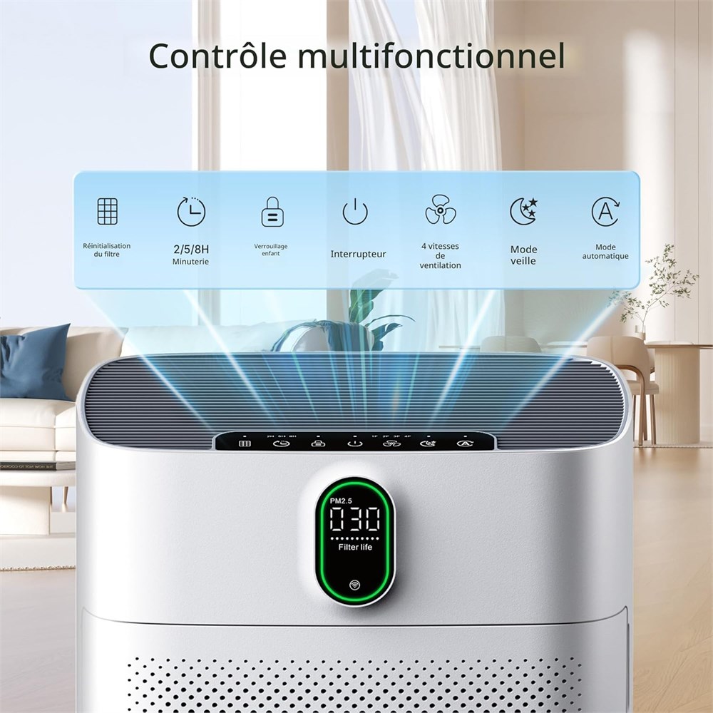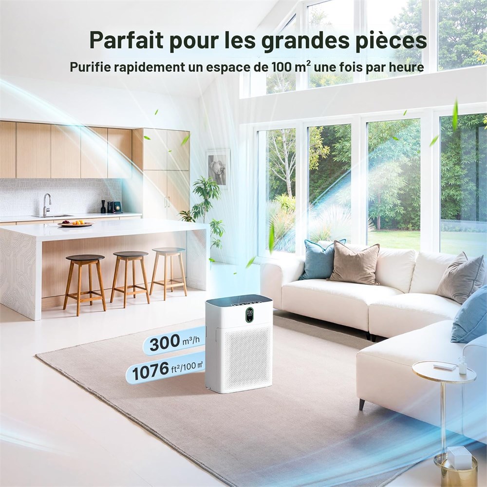 Entr e d'air double face pour une purification 2 fois plus rapide : les purificateurs d'air disposent d'un purificateur d'air HEPA haute performance avec double entr e et v ritable filtre HEPA, doublant le flux d'air pour augmenter l'efficacit de purification. Avec 300 m /h CADR, il rafra chit efficacement l'air jusqu' 1076 m par heure, r pondant aux besoins des purificateurs d'air des grandes pi ces tout en servant de purificateur d'air pour la maison Moniteur de qualit de l'air en temps r el avec mode automatique : les purificateurs d'air disposent d'un capteur PM 2,5 int gr , d tectant les particules et affichant la qualit de l'air en temps r el via une lumi re code couleur. En mode automatique, il ajuste automatiquement la vitesse du ventilateur pour s'attaquer l'air pollu , id al pour la fum e de feu de for t, le pollen, les odeurs - servant des purificateurs d'air pour les besoins de la chambre et des purificateurs d'air pour la maison Mode veille silencieuse 24 dB : les purificateurs d'air Pureborne HY4866 fonctionnent un niveau presque silencieux de 24 dB en mode veille, avec toutes les lumi res teintes. quip d'un purificateur d'air HEPA, il peut purifier l'air plus efficacement sans d ranger votre repos. Il est tr s appropri comme purificateur d'air pour la chambre et peut purifier l'air de toute la maison silencieusement et efficacement 4 vitesses de ventilateur et 3 r glages de minuterie : les purificateurs d'air Pureborne HY4866 offrent 4 vitesses de ventilateur manuelles et 3 minuteurs (2/5/8 heures). Le mode automatique permet une utilisation mains libres, o le purificateur d'air HEPA s lectionne intelligemment la bonne vitesse en fonction de la qualit de l'air. Id al pour les purificateurs d'air de grande pi ce et pratique pour les purificateurs d'air pour la maison Certifi par un tiers pour la performance : les purificateurs d'air Pureborne HY4866 d tiennent des certifications de laboratoire ind pendantes, v rifient la manipulation des particules atmosph riques et garantissent que votre famille respire un air propre et s r. La performance certifi e le rend fiable pour les purificateurs d'air pour la chambre, les purificateurs d'air pour la maison, et en tant que purificateur d'air HEPA, il offre des r sultats coh rents Options de remplacement faciles du filtre : pour que ces purificateurs d'air fonctionnent au mieux, il suffit de remplacer le filtre par des mod les Pureborne tous les 4 6 mois. Vous pouvez trouver le filtre am lior (B0FHWGYSX7) ou le filtre d'origine (B0FHWH1CT1) en recherchant l'ASIN sur Amazon. Cet entretien simple garantit qu'il reste efficace pour les purificateurs d'air de grande pi ce et les purificateurs d'air pour une utilisation dans la chambre coucher Cadeau id al pour toute maison : les purificateurs d'air Pureborne HY4866 combinent une purification efficace avec un design l gant, ce qui en fait un cadeau pratique et attentionn pour une pendaison de cr maill re, un anniversaire, No l ou pour les propri taires d'animaux domestiques. En tant que purificateur d'air HEPA, il s'adapte parfaitement comme purificateur d'air pour la maison, purificateur d'air grande pi ce et purificateur d'air pour chambre coucher.