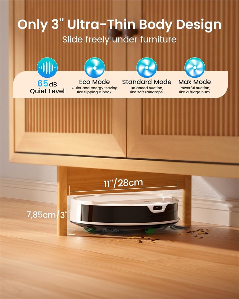 Super-Thin Body & 6000Pa Strong Suction With a slim body of only 3 inches, the OKP K5 Ultra robot vacuum cleaner easily moves through low spaces, including under sofas and beds. Combined with a powerful 6000Pa suction system and efficient cleaning technology, it lifts hidden dust, pet hair, and fine debris, delivering a deep and thorough clean throughout your home. Intelligent Carpet Detection & Auto Boost Automatically recognizes carpets and boosts suction for deep carpet cleaning. It adjusts power when switching between hard floors and rugs, ensuring an efficient, optimized clean for mixed-floor households. Equipped with 6000Pa of powerful suction, this robot vacuum cleaner removes debris, pet fur, and fine dust from tiles, hardwood floors, and carpets with ease. Smart App & Voice Control Use the OKP app to schedule cleanings, select modes (Auto, Spot, Edge, or Schedule), and track cleaning progress. The OKP K5 Ultra robot vacuum and mop combo compatible with Alexa and Google Assistant, this voice-controlled robot vacuum makes daily cleaning effortless even when you re not home. Long Runtime & Self-charging Function Designed for extended cleaning, the K5 Ultra robot vacuum cleaner runs up to 170 minutes in quiet mode covering areas up to 170 . When power runs low, this self-charging robot vacuum automatically returns to its dock, ready for the next session. Smarter Cleaning With Tof Laser Navigation This advanced robot vacuum cleaner features TOF laser technology and PSD obstacle avoidance, delivering ultra-precise 190 front-facing object detection. Its embedded laser head is flush with the body, reducing collision risk and avoiding getting stuck under furniture ideal for pet-friendly homes and complex room layouts.