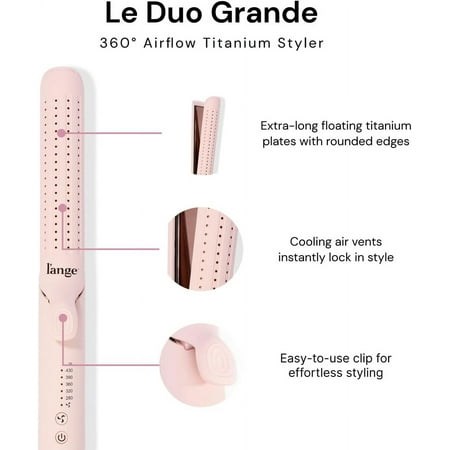 VERSATILITY FOR ALL YOUR FAVORITE LOOKS - Whether you re looking for smooth, sleek strands or beautiful curls and waves, Le Duo Grande lets you achieve it all. STUNNING RESULTS - This easy-to-use styler features longer (5.4 ) floating titanium plates with rounded edges for even heat distribution and crease and snag-free styling, especially mid-length hair or longer. SET IT AND FORGET IT - Adjustable temperature 280 F-430 F means you choose your preferred heat, while the fan and 360 vented airflow instantly cool hair on contact, locking in style and shine. DESIGNED FOR CONVENIENCE - Built-in clip to secure hair for fast and easy styling, while the lightweight, ergonomic overall construction helps make styling a breeze.