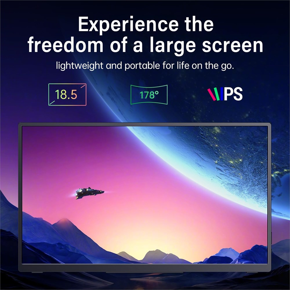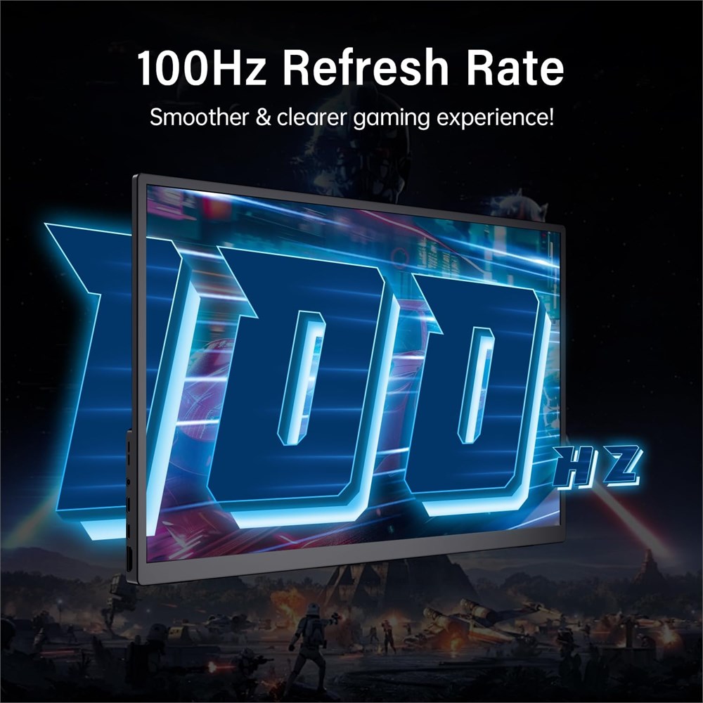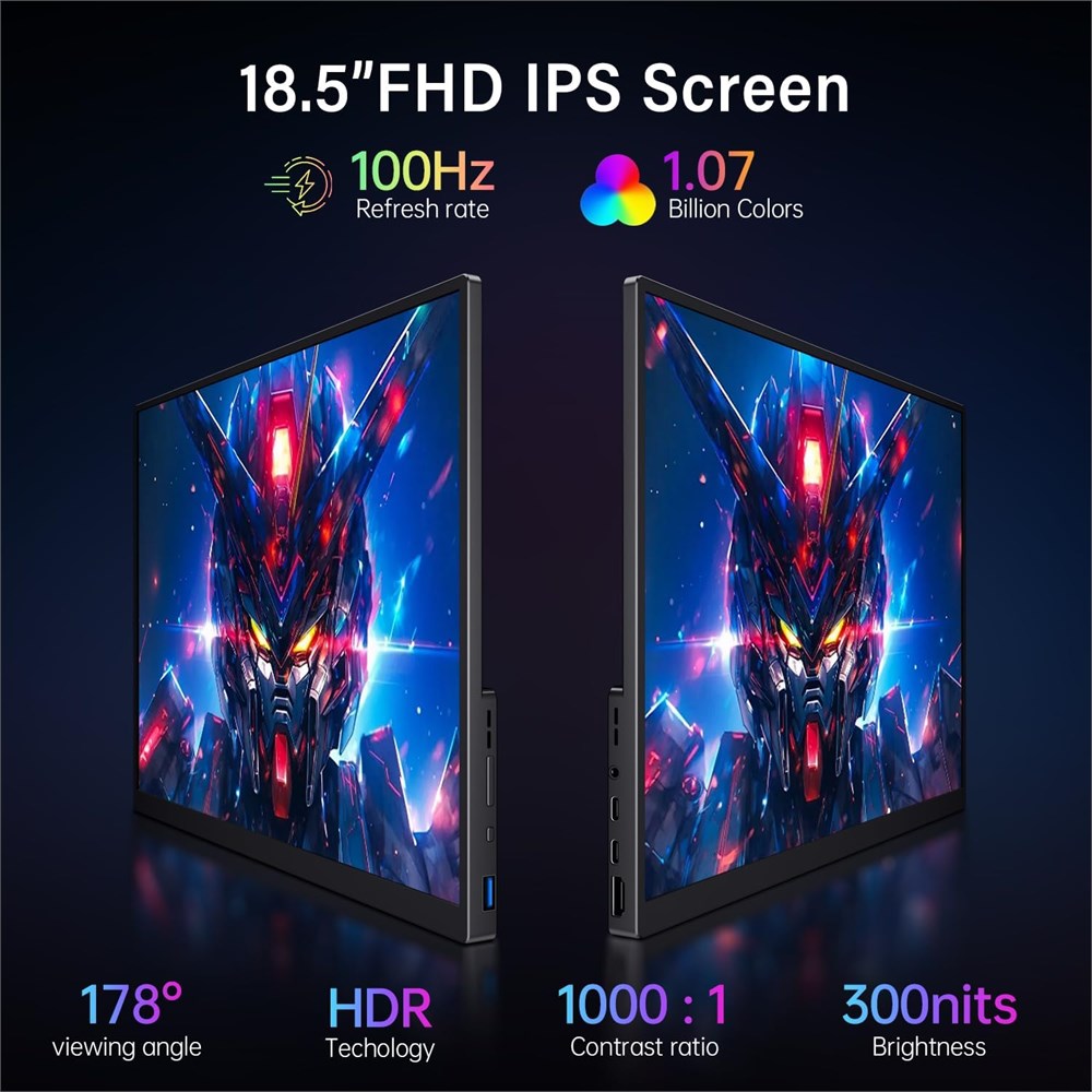 15.5-Inch Large Screen, Ultra-Lightweight and Portable: The Qunub portable monitor features an 15.5-inch 1080p FHD IPS display, designed to enhance your visual experience. Weighing only 3.3 pounds and measuring just 0.25 inches at its thinnest point and 0.5 inches at its thickest, it is easy to carry, making it perfect for travel, work, or entertainment on the go. 100Hz High Refresh Rate Display: The Qunub external monitor boasts a 100Hz refresh rate and 8-bit color depth, supporting 16.7 million colors. This ensures a smoother and more immersive gaming experience, reducing lag and motion blur, giving you a competitive edge in your games. Wide Compatibility: This monitor comes with two USB-C ports and one standard HDMI port, allowing for easy connection to various devices, including all Apple MacBooks, Surface laptops, PCs, Xbox, and PS5. If your device supports Thunderbolt 3/4 or a full-featured USB-C DP ALT mode, you can connect it effortlessly using a USB-C to USB-C cable. Adjustable Stand with Protective Sleeve: The Qunub monitor features an adjustable stand designed to provide users with a flexible viewing experience. The stand saves desktop space and includes a non-slip base for reliable stability during use. Additionally, the included protective sleeve allows for easy storage and portability, making it suitable for use anytime, anywhere. Sleek Design with Ultra-Narrow Bezels: This portable monitor features an ultra-narrow bezel design that maximizes the screen-to-body ratio, providing a wider viewing area. The aluminum alloy shell enhances durability, making it a reliable choice for on-the-go use, perfect for various settings.