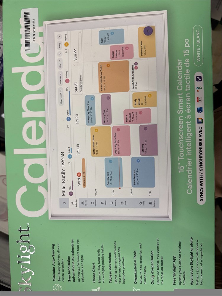 The Ultimate Smart Wall Planner Calendar: Meet Skylight s 15.4 touchscreen wall planner a digital calendar and chore chart built for busy families. Assign colors, add events, and keep everyone in sync in one central hub. Designed for 2025 and beyond. Easy Setup, Seamless Calendar Syncing: Plug in, connect to Wi-Fi, and sync your calendars in minutes. Compatible with Google, iCloud, Outlook, Cozi, and Yahoo. Add events directly on the device or through the Skylight app. Wall Mount or Stand Your Choice: A sleek, HD smart display that mounts easily to any wall or sits beautifully on a countertop. Whether it s in the kitchen, hallway, or home office, it fits naturally into your space and routines. Interactive Chore Chart + Meal Planning: Build habits with personalized chores and encourage independence. Display weekly meal plans to reduce the daily stress of "what's for dinner?" and keep routines consistent. Stay Connected from Anywhere: This digital family calendar includes Calendars, Tasks, and Lists for the whole family, plus access to the Skylight touchscreen calendar app. The optional premium Plus Plan unlocks Magic Import, photo screensaver, meal planning, and stars & rewards.