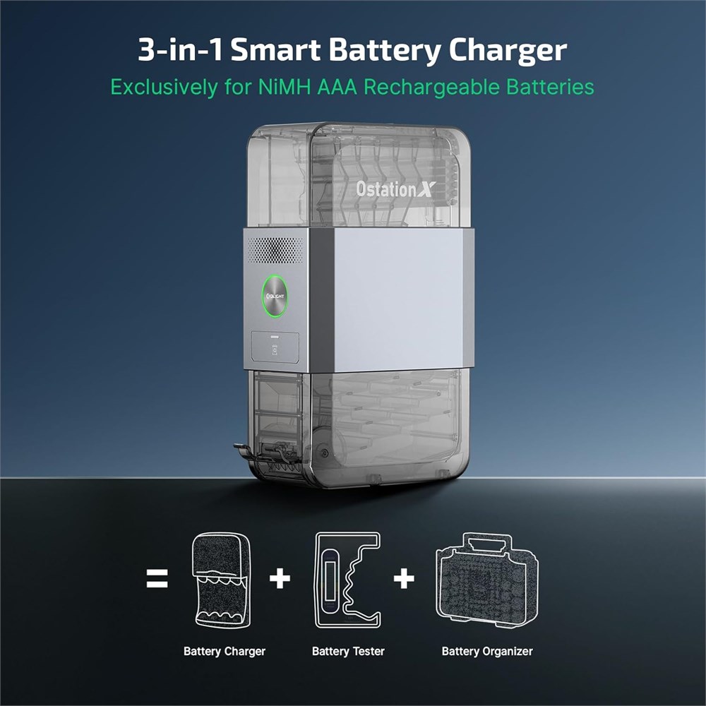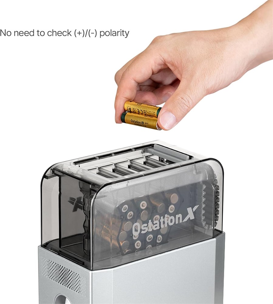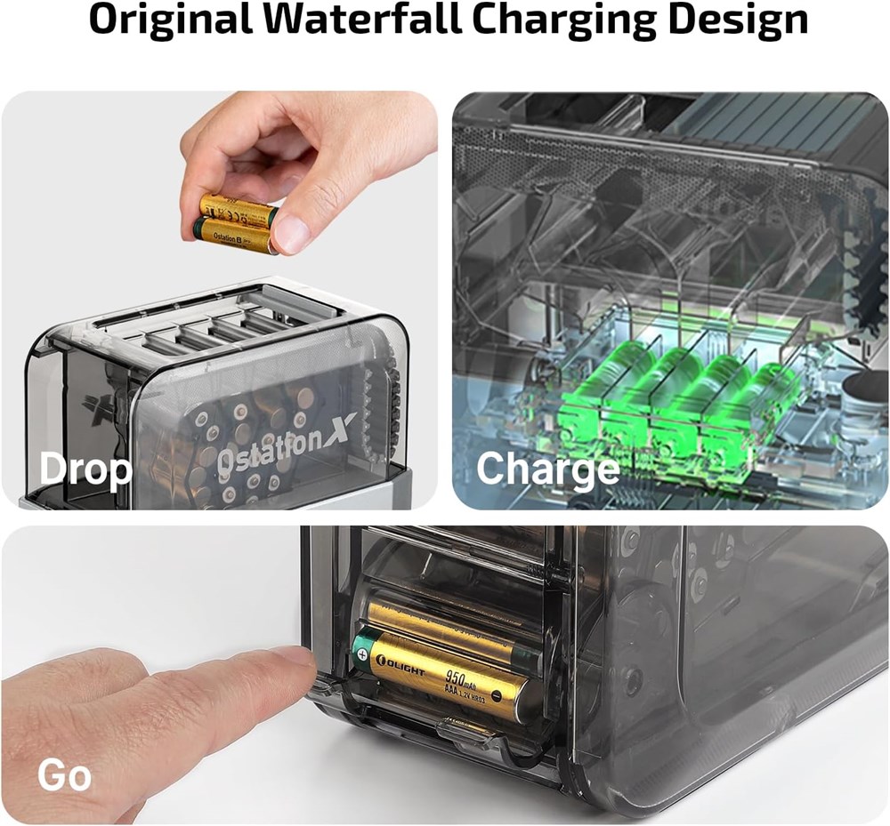 Pas besoin de v rifier la polarit (+)/(-), avec d tection intelligente des bonnes ou mauvaises batteries, il d tecte automatiquement le type de batterie et offre la fois un mode de charge standard de 3,8 heures et une charge rapide de 2,5 heures Stockage pouvant contenir jusqu' 36 batteries, pas besoin de g rer, file d'attente automatique pour le chargement, et se range automatiquement apr s avoir t compl tement charg . {b>