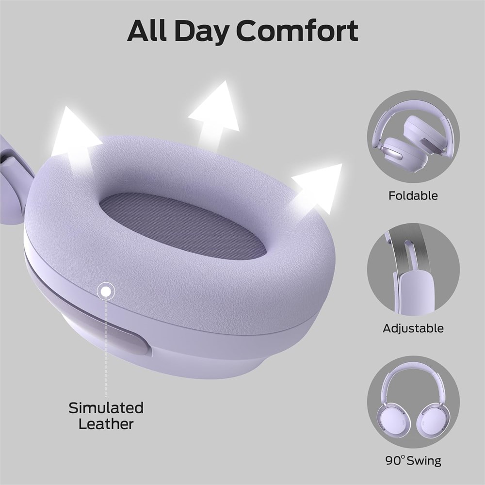 Pure Monster Sound Equipped with custom 40mm drivers, these noise cancelling headphones deliver crisp highs, balanced mids, and powerful bass, offering an immersive audio experience wherever you are. Whether at home, the gym, or traveling, enjoy crystal-clear notes and immersive sound. Active Noise Cancellation With 6 microphones and hybrid noise-canceling technology, these Bluetooth headphones reduce most ambient noise, particularly mid-to-low frequencies from cars and airplanes. Whether in a noisy city street or a crowded subway, enjoy music without distractions and block out the outside noise, immersing yourself in pure sound. Long-Lasting Battery With up to 45 hours of playtime in wireless ANC mode and 70 hours in standard mode, these headphones ensure uninterrupted listening. Whether on a long flight, during your commute, or relaxing at home, enjoy continuous audio without the need for frequent recharges, keeping you immersed in sound throughout your day. Versatile Listening Modes These Bluetooth headphones over the ear offer three listening modes to suit every scenario. Standard mode delivers balanced sound for everyday listening; Noise-canceling mode helps you immerse in music in noisy environments, while Transparency mode lets you stay aware of your surroundings when working or traveling, ensuring safety and communication without missing a beat. Comfortable & Portable Design Featuring memory-protein foam ear cups and an adjustable metal headband, these over ear headphones offer comfort for extended listening sessions. The rotating ear cups allow for flexible adjustments, ensuring a perfect fit. The foldable design makes them easy to store and carry, allowing you to enjoy high-quality audio wherever you go. Wired & Wireless Connectivity These wireless headphones feature Bluetooth 5.4 for stable wireless connectivity, delivering high-quality audio without interruptions. Additionally, when the battery runs out, simply plug in the Type-C cable to continue enjoying lossless sound. Note: The wired connection on the mobile only supports Type-C port input and output.