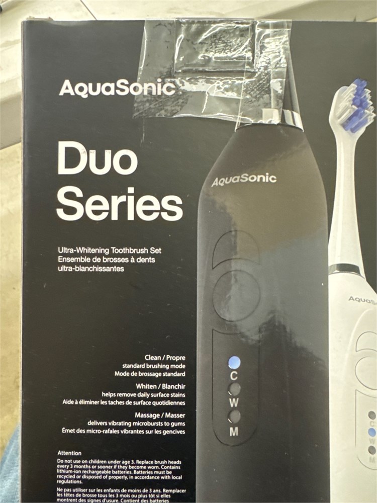 Complete Oral Care for 2 AquaSonic Duo provides complete oral care in one simple countertop setup. Duo features 2 modern smart toothbrushes with the latest oral care technologies including 40,000 vibration per minute motors, true wireless charging, 3 unique modes including modes for whitening teeth and gum health, 30-day battery life, in sleek midnight black and optic white brush handles. Duo Series comes with 12 additional accessories including 10 DuPont brush heads and 2 travel cases. Modern Technology for a Healthier Smile - Each Duo toothbrush brings your oral health routine into modern times with its built-in enhanced features. Super-fast wireless charging, 3 distinct brushing modes and a smart vibrating notification timer are some of the enhanced features built into the sleek and ergonomic waterproof black and white satin handles. Convenient Modern Home & Travel Set-Up Duo is perfect for couples, kids or anyone in between. A simple dual wireless charging dock takes up a few inches of countertop space while adding a sleek modern element to your bathroom. Duo s 30-day battery life means it s also perfect for travel simply put your duo in its included travel case and take it on the go while leaving the charger at home. All The Extras are Already Included - Every Duo set comes with 10 brush heads engineered by world famous DuPont; a world leader in quality & materials science. Also included are 2 convenient color coded custom hard shell travel cases made of BPA-free plastic with space for two brush heads. No need to buy expensive brush head refills or extra accessories. It s already in the box. What's Included - 1 Midnight Black Smart Toothbrush, 1 Optic White Smart Toothbrush, 1 Dual Wireless Charging Dock, 2 Travel Cases, 10 DuPont Brush Heads, and user manual.