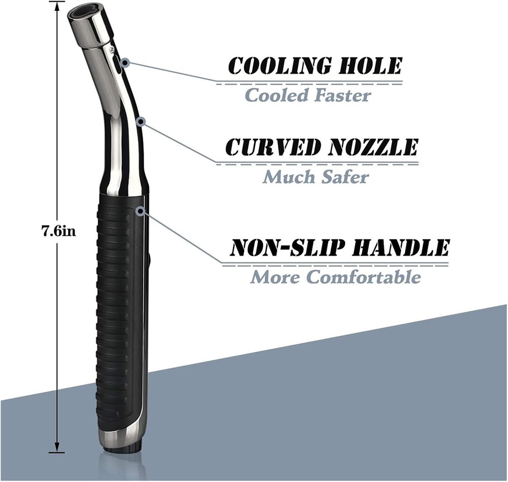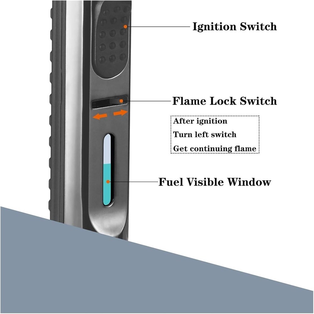 Adjustable and Lockable Flame - The unique long neck design of the long lighter protects your hands from burns. The flame size can be easily adjusted by rotating the knob at the bottom, and the maximum flame temperature can reach 2372 F/1300 C. The flame lock is designed to support continuous ignition and free your fingers, making you feel easy and convenient to use. Visible Fuel Window - The pen lighter visible fuel window allows you to easily monitor fuel usage, you can check the remaining gas and refill at any time. Note: Please wait 3 minutes after refilling to allow the gas to stabilize in the lighter. (Note: According to DOT and USPS safety regulations, this flame lighter does not contain butane). Windproof & Refillable- Butane torch lighter powerful flame can keep igniting in strong wind. Fill with regular butane gas and fuel. Invert the gas tank and insert the tip of the gas tank into the filling valve. Press 3-5 times, each time for 5-8 seconds. Once the gas starts to overflow, stop filling, it is full. Safe and Practical - Carefully designed upgraded multifunctional jet lighter, using heat-resistant materials (zinc alloy + ABS + ceramic) to provide you with more safety protection. The stepped non-slip handle is ergonomically designed and more comfortable to use. Very suitable for camping, travel, hiking, gas stoves, fireplaces, wood, birthday parties. Gift Idea & Service The beautiful gift packaging makes a great gift for your father, uncle, and husband. This is the only lighter you will ever need.
