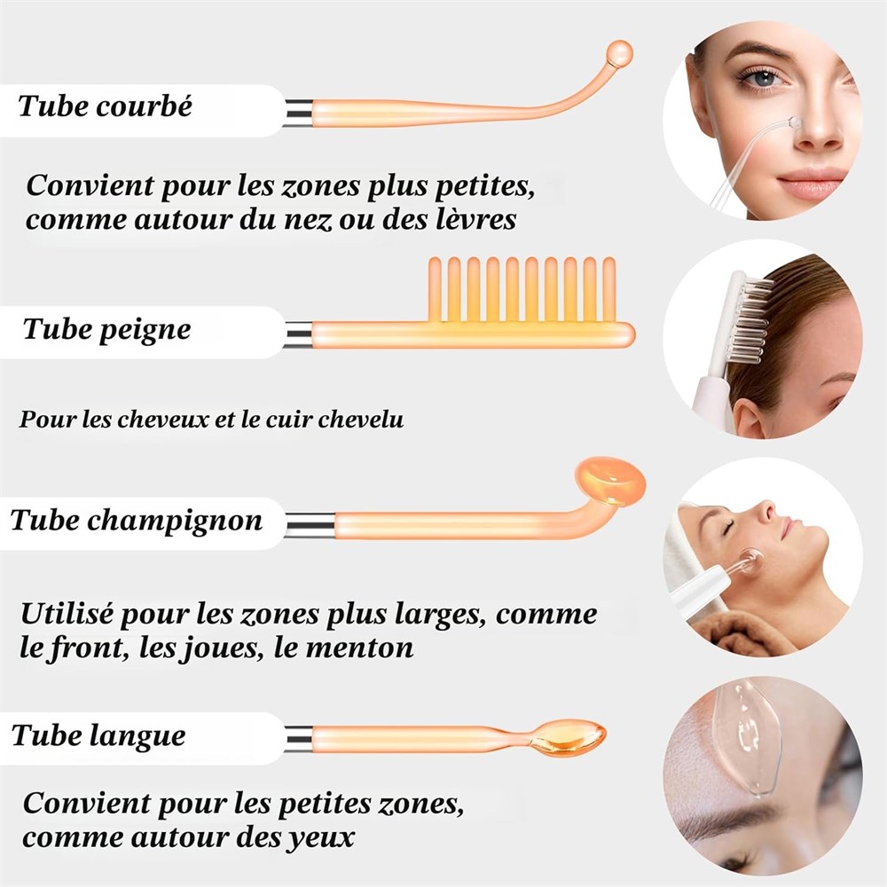 Ce b ton haute fr quence convient au soin de la peau et l'am lioration de la qualit des cheveux. Il peut tre utilis d'une seule main ou m me pour r gler le niveau lors de l'utilisation. Il est tr s pratique utiliser la maison ou en voyage. Avec 4 tubes diff rents adapt s diff rents types de peau. Veuillez utiliser les appareils Darsonval Skin 2 3 fois par semaine, 10 15 minutes chaque fois. Nous offrons une garantie de 1 an. Vous pouvez nous contacter tout moment si vous avez des questions.