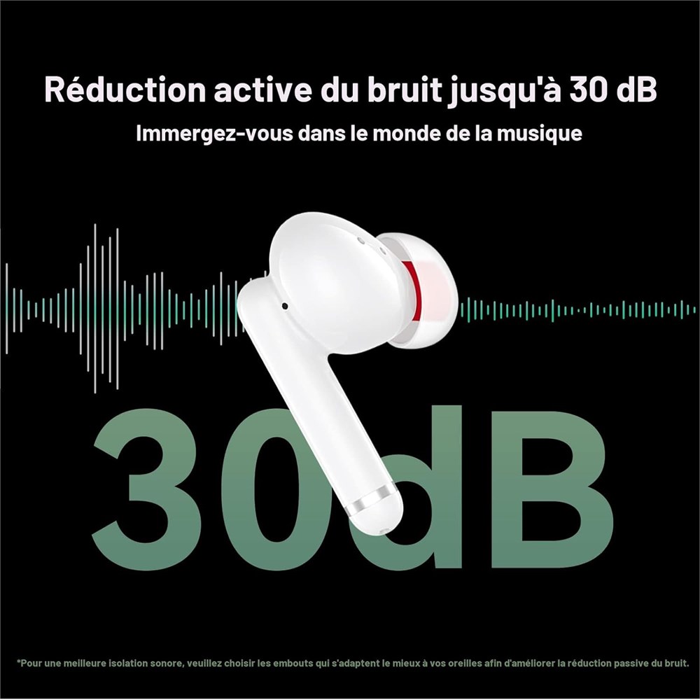 couteurs ANC et 6 microphones : les couteurs UMIDIGI AirBuds Pro sont quip s de 3 microphones pour chaque couteur, avec suppression active du bruit hybride, il peut d tecter le bruit et les annuler en envoyant des ondes anti-bruit. Non seulement il peut bloquer le bruit dans les environnements bruyants communs, vous aidant vous plonger dans le monde de la musique, mais aussi entendre et tre entendu clairement la voix pendant les appels. Mode transparence : les couteurs Bluetooth peuvent choisir le mode transparent, vous permettant d'entendre les sons environnementaux naturellement, de sorte que vous ne manquerez pas les sons importants et ne parlez pas librement sans enlever les couteurs sans fil. Design ergonomique et ajustement s r : les AirBuds Pro sont con us avec un tui de charge de forme ovale et un toucher lisse qui s'adapte parfaitement votre paume. Fournit galement des bouchons d'oreille en silicone souple en 5 tailles afin que vous puissiez choisir les plus adapt s qui s'adaptent vraiment vos oreilles, et un seul couteur qui ne p se que 5 grammes, vous donnant un ajustement s r et confortable. 25 heures de lecture et contr le tactile : lorsque les couteurs sans fil sont compl tement charg s, ils peuvent jouer de la musique jusqu' 6 heures. Un total de 25 heures de lecture de musique avec l' tui enti rement charg vous permet de ne pas manquer chaque battement. Vous pouvez galement utiliser le contr le tactile intelligent pour lire et mettre en pause de la musique, r pondre ou rejeter des appels, invoquer l'assistant vocal, utiliser le t l phone intelligemment et lib rer vos mains. Bluetooth 5.1 et application UMIDIGI La nouvelle g n ration de Bluetooth 5.1 offre une connexion stable et rapide, prend en charge la transmission deux canaux gauche et droite pour r duire la latence et le d calage pour un son de haute qualit . Ce qui est plus puissant, c'est que vous pouvez librement d finir votre fonction tactile pr f r e et r gler votre style de musique pr f r (par d faut, pop, subwoofer, rock, doux et classique) en t l chargeant l'application UMIDIGI.