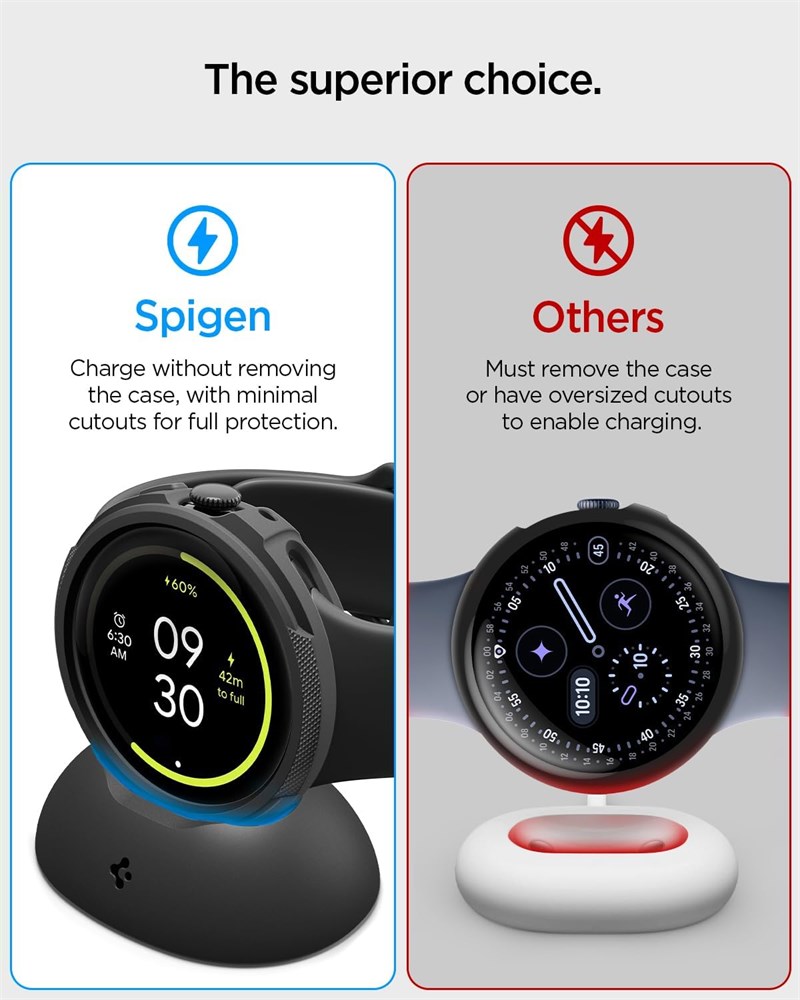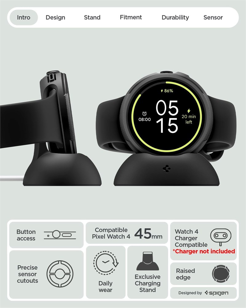 Sleek and protective: Made from flexible TPU for comfort all day. Absorbs shocks and protects your watch from bumps and scratches Charger stand included: Includes a charger stand for easy charging without taking off the case Matte finish: The matte finish adds a modern, stylish look to your watch Precise cutouts: Raised bezels for bolstered screen protection and precise cut-out for access to all button Only compatible with Pixel Watch 4 45mm (2025). Not compatible with Pixel Watch 3 45mm.