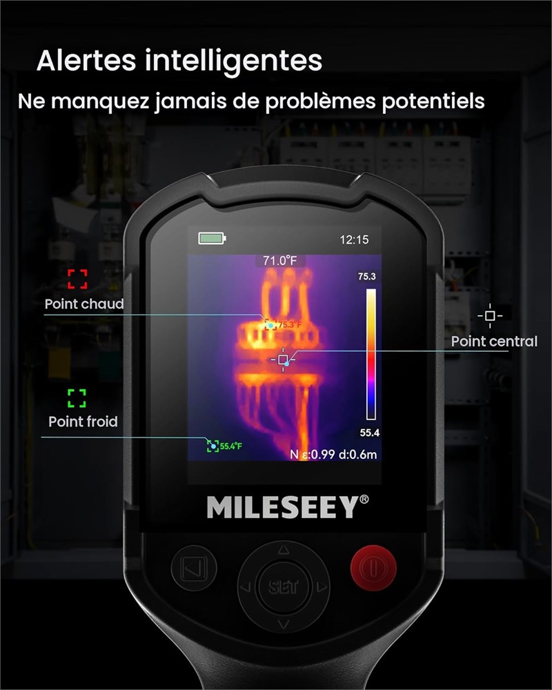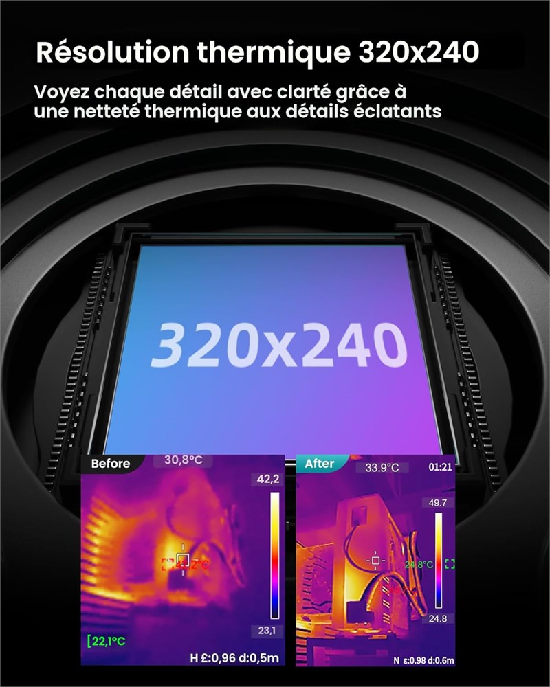 Clart thermique de niveau professionnel : la cam ra thermique Mileseey TR20 a une r solution de 320 x 240 et un taux de rafra chissement de 50 Hz offrant des images thermiques lisses et nettes, tandis que le NETD 40 mk garantit une d tection ultra-sensible des petites diff rences de temp rature. L'objectif grand angle de 50 couvre plus de surface en une seule prise de vue parfait pour des inspections d taill es Affichage clair et donn es de temp rature fiables L' cran LCD de 2,8" avec une r solution de 480 x 640 garantit que chaque d tail thermique est facile voir, tandis qu'une large plage de temp rature de -20 550 C couvre la plupart des besoins d'inspection. Avec une pr cision de mesure de temp rature de 2 C, vous obtenez des mesures pr cises auxquelles vous pouvez faire confiance Alertes intelligentes et capture rapide : temp rature d'alarme personnalisable, largeur de temp rature personnalisable. L'alarme sonore et lumineuse vous avertit instantan ment des anomalies, et le mode instantan de prise de vue rapide vous permet d'enregistrer des moments cl s en un clin d' il. Plus de d tails critiques manquants lors des inspections rapides Enregistrement et analyse faciles : la fonction d'enregistrement vid o int gr e stocke les s quences d'inspection, et la prise en charge du logiciel MiLESEEY Analyzer PC vous permet de plonger plus profond ment dans les donn es plus tard. Id al pour les professionnels qui ont besoin de r sultats pr cis et exploitables Suivi automatique des points chauds/froids D tecte et met automatiquement en vidence les points chauds/froids, afin que vous puissiez identifier les anomalies en une seconde. Gagnez du temps sur site, r parez-le temps et assurez-vous de ne jamais manquer un probl me potentiel lors des inspections.