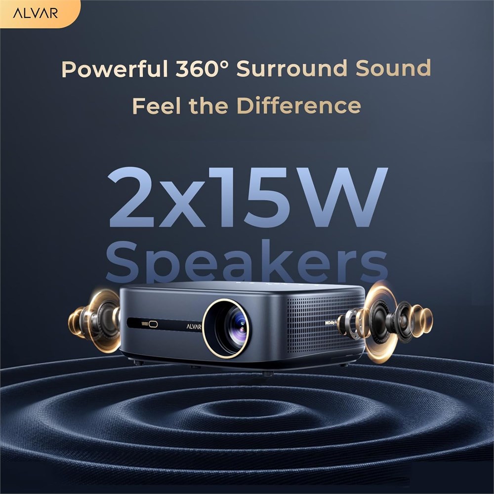 2025 New Breakthrough of Ultra Bright 1000 ANSI & Audio by DBX-TV: Boasting an impressive 1000 ANSI lumens, this outdoor projector delivers an incredibly bright and vivid image that remains crisp and clear even in well-lit environments. This is so far the only one projector which can be used in daytime. Besides, this projector 4K+ is the world s first with Total Sonics technology from dbx-tv, bringing you professionally tuned cinematic sound and elevating the audio experience to a new level. The only one 4k projector which have true 360 stereo surround sound (there is a switch in the sound setting to turn on/ off it) Cinematic Streaming & Unmatched Audio: Elevate your home theater experience with the Alvar V800P WiFi Bluetooth projector, preloaded with officially licensed streaming apps like Netflix, Prime Video, and YouTube to unlock endless content instantly no external devices needed. What's more, an industry-first Dolby Audio & dbx-tv Total Sonics fusion. Dolby Audio heightens realism until raindrops in a film seem to ricochet off your actual ceiling, while dbx-tv's exclusive bass system delivers theater-grade depth with zero distortion, all powered by 30W built-in speakers that redefine audio benchmarks for $2,000 projectors. Instant Setup, Perfect Projection Every Time: The Alvar movie projector features a 4D Smart System that eliminates setup hassles with auto-focus for razor-sharp clarity, auto-keystone correction to adjust tilted placements (ideal for bookshelves or ceiling mounts), and obstacle-detecting AI that avoids lamps and pets for an uninterrupted experience. Its intelligent screen alignment locks content perfectly within boundaries no manual adjustments needed. If necessary, fine-tune with the remote. Pro tip: For optimal clarity, project in a relatively dark environment and keep the tilt 20 . Whether indoors or outdoors, this proyector ensures a seamless and immersive viewing experience. Fastest WiFi 6 & Two-way Bluetooth 5.2: With the advanced WiFi chip, the wifi projector can easily mirror your favorite shows and movies from your 7 phone screen to 50-300 big screen, bringing us a cinematic experience home. The Bluetooth projector supports stable lightning fast two-way transmission. It can not only connect with phone to use as a speaker, but it can also to connect with Bluetooth speakers and earphones with no noticeable sound sync lag. Multiple Installation Methods & Various Device Connections: This movie projector supports ceiling mount (4 holes covered by rubber filler in the bottom of the projector), tabletop mount, and wall mount, meeting different projection needs. Additionally, it comes with 2 HDMI ports, a USB port, and a 3.5mm headphone jack, making it compatible with Fire TV Stick, Roku, laptop, external speakers, iPhone, Android, iPad, Switch/PS5, and more. Perfect for indoor and outdoor movies, small meetings, outdoor camping, gaming, parties, learning, and business. Advanced Touch Pad and Bluetooth Remote Included: To control the projector easier, we adopted the touch pad with light. The Bluetooth/Infrared Remote Control is also reasonably responsive. Warmly Tips: Higher brightness causes the fan to run faster, which may result in increased fan noise. Due to copyright restrictions, all projectors do not support direct wireless mirroring of streaming services like Disney or Crave from mobile devices. For a seamless streaming experience, we recommend using a TV Stick (purchase separately) with our projector.