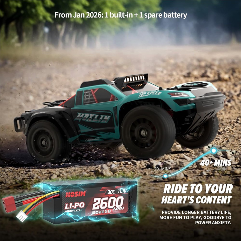 Thrilling, Unstoppable Performance Adults RC Truck Engineered for adult hobbyists and adrenaline seekers, this hobby-grade RC truck is a true rc truck 4x4 off-road beast. Feel the rush of 50mph (80KM/H) top speeds in this brushless RC truck, powered by a robust 2847 3100KV motor and 45A ESC. It delivers the unstoppable performance expected from a top-tier remote control truck and monster truck RC. Extreme Durability for Off-Road Bashing Durability defines this RC truck for adults. Its upgraded helical gear differential, crafted from 40Cr chrome steel, reduces friction by 30% and doubles the lifespan of standard gears, having survived 200+ extreme tests. Combined with a carbon steel drivetrain and CNC aluminum chassis, this Hosim RC truck is built to withstand the massive impacts of serious off-road RC truck bashing. Precision Control & All-Terrain Mastery Take command with precision. The 2.4GHz remote offers a 150-meter range and ultra-responsive steering, complemented by a powerful 3KG servo. Whether you re a beginner or an expert, this 1/14 scale RC car provides adjustable aluminum oil-filled shocks and high/low-speed modes to fine-tune handling for any driving style. All-Terrain, Trophy-Ready RC Truck This 4WD RC truck includes TWO complete sets of tires for optimal grip on any surface, such as grass, gravel and dirt roads. The upgraded metal oil-filled shocks absorb big jumps for steady landings. Its modular design allows easy upgrades, and the included 2pack 2600mAh 3S battery delivers 50+ minutes of intense runtime, making it one of the most capable RC cars for adults. (Need more 3S batteries and replacement parts can be purchased on Amazon) LED Headlights, Fearless Nighttime Driving This 1:14 scale all terrain off road rc buggy delivers exceptional realism, powered by a brilliant LED lighting system. Its bright front headlights illuminate the path for thrilling night-time adventures, while adding a cool, customized look. Important Notes Hosim is always committed to developing more professional racing models for customers. Due to the extremely high speed of this off-road rc car, to extend its service life, please avoid maintaining full throttle continuously for more than 20 minutes, as this may cause the ESC and other components to overheat. If overheating occurs, allow the RC vehicle to cool down completely before resuming use.