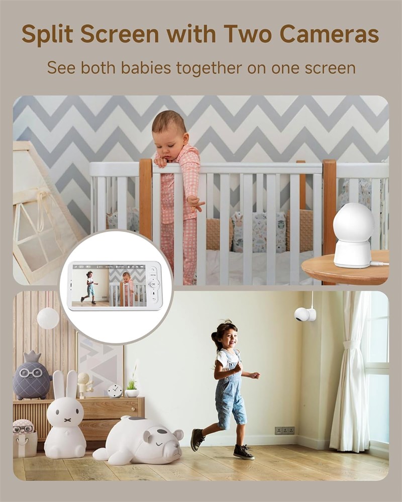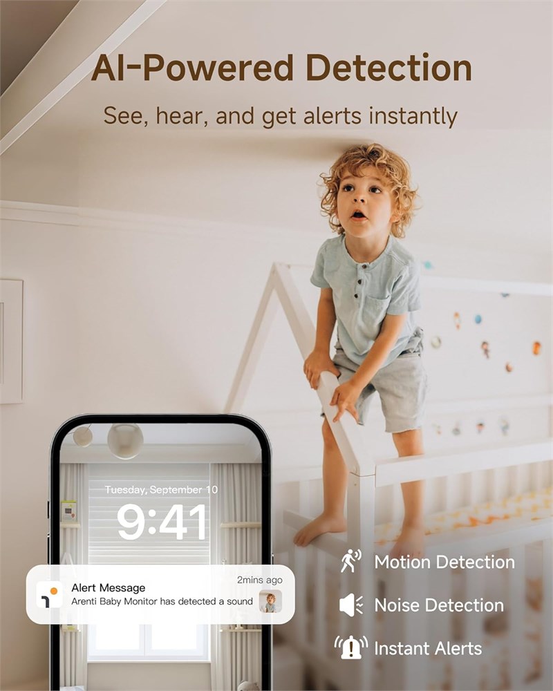 Easy Installation & Dual Usage - Enjoy plug-and-play convenience with two options to use. Use the LCD screen without wifi at home. Support range of 1000ft(max). Remotely control the baby monitor by smartphone app when going out. Our hopping and digital encryption technology ensures security and reliability. Note that the baby camera must connect to the same 2.4G WiFi (not 5G) as the phone app during the initial setup. 360 View & Smart Detection - The B2Kit audio monitor provides a comprehensive 360 view with a 100 lens, 355 horizontal, and 60 vertical rotation. You can remotely rotate the camera through the LCD screen or mobile app. The baby monitor features motion, crying, and specific area detection with adjustable sensitivity, along with a temperature sensor. Alerts are sent to your phone upon detecting any abnormalities. High Resolution & Enhanced Night Vision - The video baby monitor features a 5-inch 720p high-quality color LCD screen with 4x magnification. And provides 2K resolution video by phone app. You can see your child s tiny movements even at night. It supports micro SD cards (up to 128 GB for the screen and 256 GB for the camera) and cloud storage for video footage. Clear Two-Way Audio & Friendly Features - Baby monitor with camera has a built-in mic and speaker for smooth talk with your baby or pets anytime, anywhere. You can also play soothing lullabies. It can also play soothing lullabies and includes features like VOX mode, nursing reminders, and One-Touch Calls. You can manage all your baby monitors through one app and share access with family or friends, with the option to revoke sharing at any time. Free Event Recording & Dual Storage Options - Arenti prioritizes your privacy and security. Your data is securely stored on Amazon's AWS, using end-to-end encryption (E2EE) to ensure that only you can access your footage with a unique decryption key. Each baby camera monitor comes with free 6-second event recordings of the 7-day loop in app.