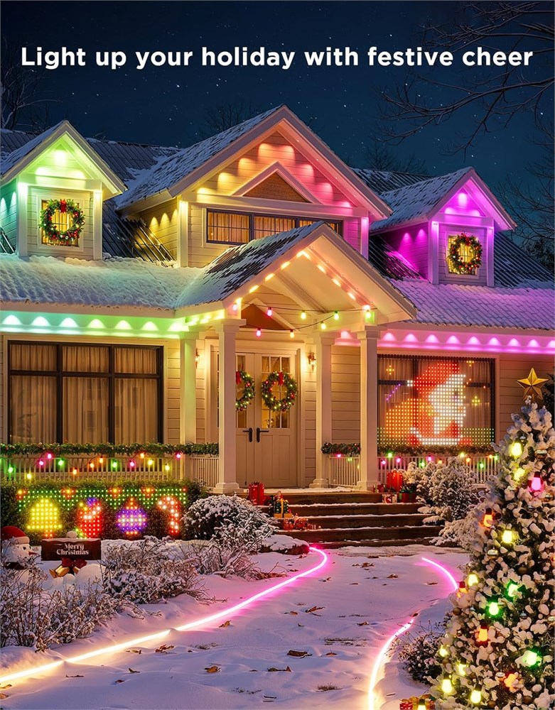 Elaborate RGBIC Lighting: With an upgraded LED design, Govee Permanent Outdoor Lights 2 shows smooth and uniform lighting effects chosen from 16 million accurate color options including 40lm white light, enhancing daily aesthetics and security. AI Light Show: Alongside 100 preset scene modes and DIY lighting, the holiday lights provides AI-generated Lighting Effects. Personalize your ambiance easily with a single command on any occasion including festivals and sports events. Year-Round Reliability: Govee Permanent Outdoor Lights 2 use an anti-UV material and are IP67 waterproof with an IP65-rated Control Box & Adapter. Rain, shine, sleet, or snow enjoy outdoor decorations from -4 F to 140 F (-20 C-60 C). Easy Installation: Provided VHB glue and clips make installation simple. Note: Govee Permanent Outdoor Lights 2 cannot be cut. Maximum of 9 light segments & 4 extension cables (2 12ft & 2 4ft). Seamless Smart Home Integration: Control the holiday outdoor lights from anywhere with Govee Home App for versatile lighting, or use Alexa & Google Assistant for smart voice control. Create one-tap light shows with Music mode or DreamView.