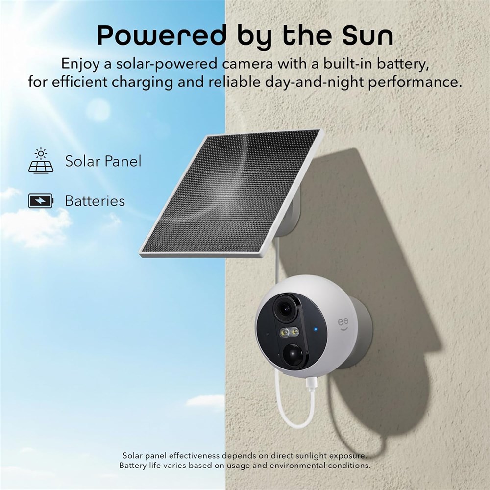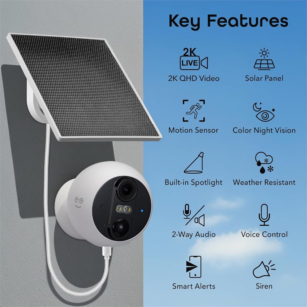 Puissance solaire continue de 3 W : comprend un panneau solaire de 3 W haute efficacit qui peut recharger compl tement la batterie de 4400 mAh en environ 12 heures de soleil pour une s curit sans entretien, toute l'ann e. Montage magn tique instantan : s curisez la cam ra en quelques secondes l'aide de la puissante base magn tique qui adh re n'importe quelle surface m tallique, permettant un ajustement parfait de l'angle sans outils ni per age. 3MP Ultra-HD & Wide View : Capturez chaque d tail en r solution 2K (2304 x 1296) avec un grand angle de vision de 106 pour une couverture sup rieure de votre cour, all e ou entr e. Vision nocturne et projecteur couleur : dispose d'une vision nocturne couleur avanc e et d'un mini spot LED int gr pour capturer des s quences claires et vives dans l'obscurit totale une port e allant jusqu' 10 m tres. IP66 r sistant aux intemp ries et stockage local : con u pour une durabilit en ext rieur avec un indice IP66 ; s curisez vos enregistrements localement en ajoutant une carte microSD jusqu' 256 Go (vendue s par ment).