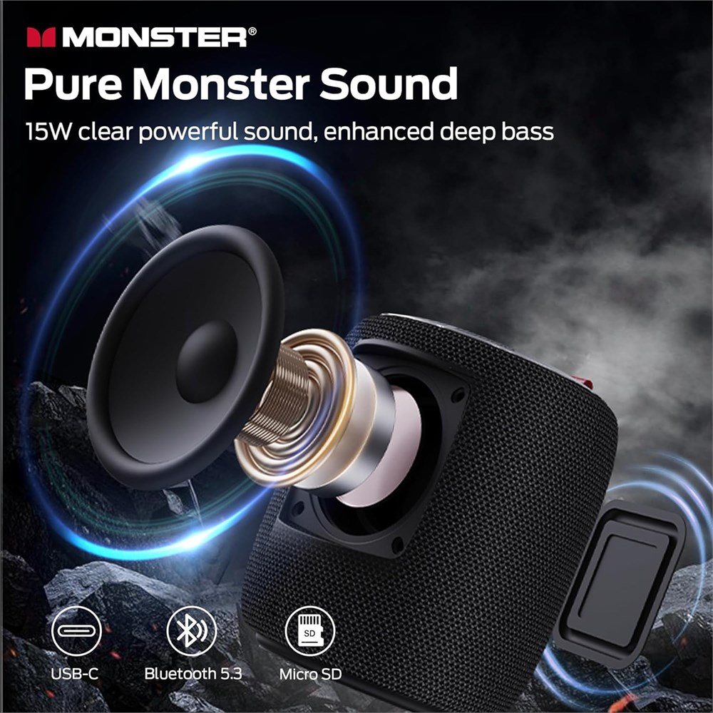 Monster S110 Bluetooth Speaker, Portable 5.2, TWS Pairing, Built-in Mic.
