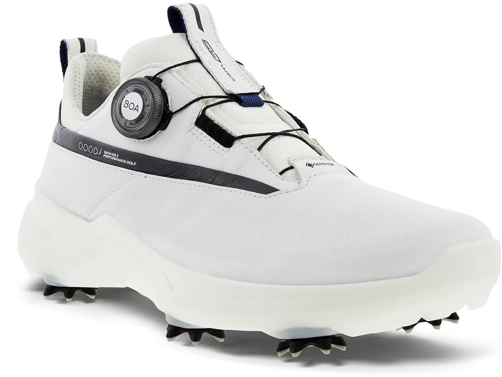 FEATURES Made from ECCO Performance leather BIOM X-TENSA technology which minimizes the play between your foot and the shoe Natural Motion technology- bringing the player closer to the ground using an anatomical last resulting in better feel Gore Tex 100% waterproof technology combines optimized breathability and protection against the elements Removeable, washable Ortholite inlay sole- offers extra width if removed The outsole includes Zarma Tour spikes along with TPU Hybrid elements providing excellent grip and stability BOA Fit system allows for simple adjustments and an easy on and off, and is on the side adding to the modern aesthetics.