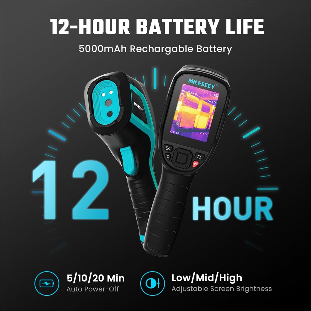 Super Resolution Thermal Camera The TR256E infrared camera is equipped with 256 x 192 ultra-high resolution. Delivers smooth and fluid thermal imaging with a 50Hz refresh rate, ensuring real-time monitoring and swift detection of dynamic thermal changes. High-precision Temperature Measurement Achieves a accurate temperature resolution of 0.1 C, enabling precise detection and differentiation of temperature variations.High Sensitivity, features a NETD of 40mK, ensuring sensitivity to subtle temperature changes for detailed thermal analysis.Provides reliable and consistent thermal data, essential for critical applications such as electrical inspections, mechanical diagnostics, and building assessments. Long Battery Life & Durable (1)The TR256E thermal imager Equipped with a powerful 5000mAh battery, providing 12-hour operational time for prolonged use in the field without frequent recharging. (2)Features an integrated LED flashlight for added convenience and illumination during inspections or low-light conditions.(3) Passed 6.6ft drop resistance tests, ensuring reliability and durability in rugged environments. 4 Color Palettes Choose from 4 distinct color palettes to visualize thermal data in different ways, enhancing clarity and ease of interpretation.Each palette offers unique visualization options, allowing users to highlight specific temperature ranges or anomalies effectively. Adjust color palettes according to environmental conditions or personal preferences, ensuring optimal thermal image clarity. Versatile Applications Competent for vehicle diagnostics, HVAC inspections, industrial maintenance, and electrical inspections. Provides strong performance to improve accuracy and efficiency in a variety of professional contexts.