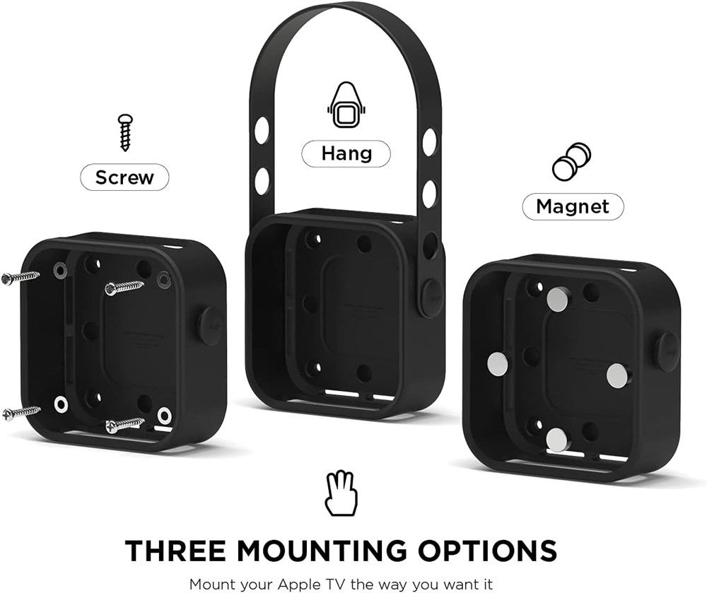 Compatible with ALL Apple TVs (including the new 2021 Apple TV 4K(2nd Gen), Apple TV HD, and the 2nd, 3rd, 4th, 5th, and 6th Apple TV generations) UNLIKE OTHER GENERIC TV MOUNTS THAT don't stick well enough on the wall, the elago apple tv mount gives you a STRAP TO HANG YOUR APPLE TV ANYWHERE and POWERFUL MAGNETS TO ATTACH it on metal surfaces of televisions. KEEP YOUR SPACE ORGANIZED BY hiding your apple tv BEHIND THE TELEVISION. PROTECT YOUR APPLE TV FROM SCRATCHES AND DAMAGE WITH apple tv mount made from high-grade, PREMIUM SILICONE. PREVENT APPLE TV FROM OVERHEATING WITH vents allowing air to circulate under the device. elago is a DESIGN COMPANY FIRST AND FOREMOST. Our motto is SIMPLE SOPHISTICATION because we create products that are USEFUL AND AWESOME! WE ALWAYS CREATE products that WE OURSELVES USE, so we know YOU WILL LOVE IT!