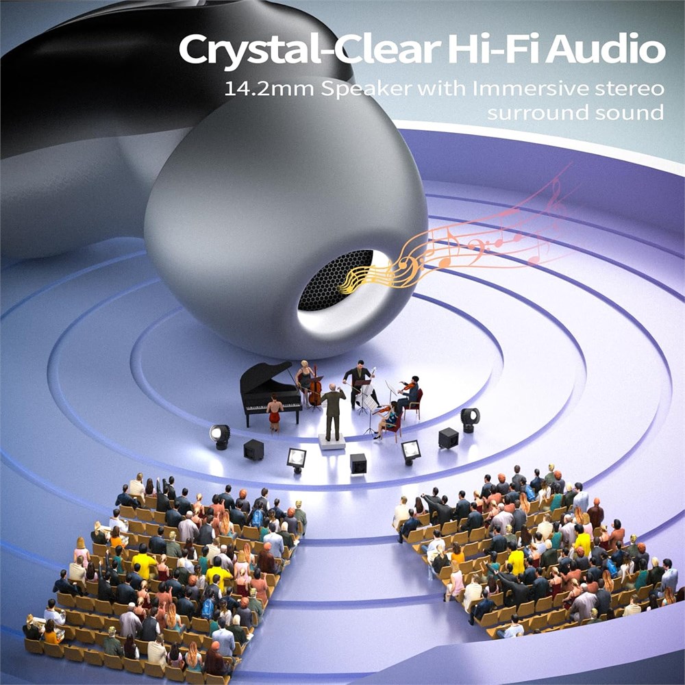 Extreme Side Sleeper Comfort: Slip these ultra-slim sleep earbuds into your ears and feel as though they disappear. These wireless earbuds engineered with a minimalist profile and soft, skin friendly silicone tips, they nestle gently in the ear canal without creating pressure points even when you lie on your side. Activate Sleep Mode to silence all notifications, disable accidental touch controls, and eliminate low battery beeps. The result is uninterrupted, blissful rest that lets you drift off naturally without distractions or discomfort Immersive Active Noise Cancellation: The Wireless Earbuds harness the power of advanced ANC to carve out a personal oasis of calm. Whether it s the rhythmic snoring of a partner, ambient chatter in shared spaces, or distant traffic rumble, these ear buds block intrusive noise so you can fully relax. Ideal for home use, flights, or hotel stays, they transform any environment into a tranquil sound cocoon Clear Calls with ENC Microphones: These headphones stay connected with uncompromised clarity, even in busy or windy conditions. Four precision engineered ENC (Environmental Noise Cancellation) microphones work together to suppress background noise and capture your voice with lifelike fidelity. Paired with a high performance 14.2 mm dynamic driver, calls, podcasts, and late night voice memos come through crisp and intelligible Instant Bluetooth 5.4 Pairing & Strong Signal: These bluetooth headphones experience hassle-free wireless connectivity thanks to the latest Bluetooth 5.4 chipset. Simply open the compact charging case and the wireless headphones automatically reconnect to your last paired device no manual intervention required. Enjoy a stable, interference resistant connection up to 15 meters, so you can move freely around your home or office without dropouts Sleep Mode for Truly Undisturbed Nights: With Sleep Mode activated, The D20 earphones silence all alerts, call notifications, and low-battery beeps giving you a quiet, uninterrupted sleep experience. Touch controls are disabled to prevent accidental taps during the night. Whether you're a light sleeper or simply need a calm space to wind down, Sleep Mode helps you stay relaxed and fully disconnected until morning 48H Long Battery Life & Fast Charging: Engineered to keep pace with your busiest schedules and deepest slumbers, these wireless earphones deliver up to 8 hours of continuous play on a single full charge more than enough for an entire night s rest or a long-haul flight. The pocket sized case adds 40 more hours so you can recharge anywhere. And when power runs low, a 10 minute USB C quick charge session unlocks up to 2 hours of playback IPX7 Waterproof & Universal Compatibility: These Sleep headphone meet the IPX7 standard to withstand everything from intense workouts and heavy rain to accidental submersion so sweat, splashes, or surprise downpours won t ever cut your rest short. At the same time, they deliver seamless Bluetooth pairing across virtually all your devices whether you re on iOS or Android, using a smartphone, tablet, laptop.