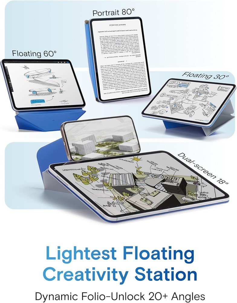 Compatibility - Exclusively compatible with the iPad Pro 11" (M5 2025/M4 2024) Models A2836, A2837, A3357, A3358. Note: It will not be compatible with other models. Please check your iPad model before purchase. Dynamic Angles, Move with Flow - The Dynamic Folio with 20+ adjustable angles for iPad offers fluid angle adjustments that flow with your every need. Effortlessly shifting from work to creativity, it combines minimalist design with versatile functionality, enhancing your dynamic lifestyle. Ultimate Ergonomic Floating Modes - MOFT Dynamic Folio Case makes iPad ergonomics effortless for mobile creativity - featuring a single-piece structure that effortlessly folds into a workstation lifting iPads up 2-inches. Frictionless angle shifts between 30 and 60 keep you aligned in your input-output framework. As Light As 10.3oz - Like a thin yet powerful sheet of paper wrapping around your iPad, this folio offers effortless protection and versatile angles - perfect for any scene without the added bulk, all at just 10.3oz. Magnetic Flexibility - Effortlessly adjust angles and elevate your device with confidence. Super-strong N52 magnets provide secure support, while the lightweight yet durable fiberglass structure ensures stability. (NOTE: Please first confirm your iPad model, as the magnetic attachment points differ for each model. If the model is not properly matched, you may experience insufficient magnetic hold.) The Modular Pen Holder is not included. Feel free to add it through add-on.
