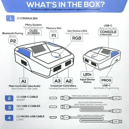 XBOX : All models of Xbox Series X|S, Xbox One & Xbox 360 consoles are supported, as well as most most licensed Xbox controllers, including Elite Series 2, Scuf Prestige, Razer Wolverine Tournament and more. PLAYSTATION : All models of PlayStation 5, 4 & 3 are supported, including the PS4 Pro. Most popular controllers are supported, including DualSense, Astro C40 TR, Nacon Revolution Pro 3, Scuf Vantage 2 and many more. SWITCH : The Nintendo Switch and TV Dock are fully supported, as well as most licensed Switch wired or wireless controllers, including the popular Nintendo Joy-Cons and the Switch Pro Wireless Controller. Zen supports USB, Bluetooth and Dual Bluetooth. WINDOWS : Connect supported wired and wireless controllers to your Windows PC, inc. Mouse & Keyboard. Get access to compatible scripts, macros and GamePacks. Optimized for Windows 11. *Game must support Xbox Controllers. Product Type: Remote Control Package Dimensions: 4.2 cms (L) x 13.7 cms (W) x 19.3 cms (H) Package Quantity: 1 Country Of Origin: United States.