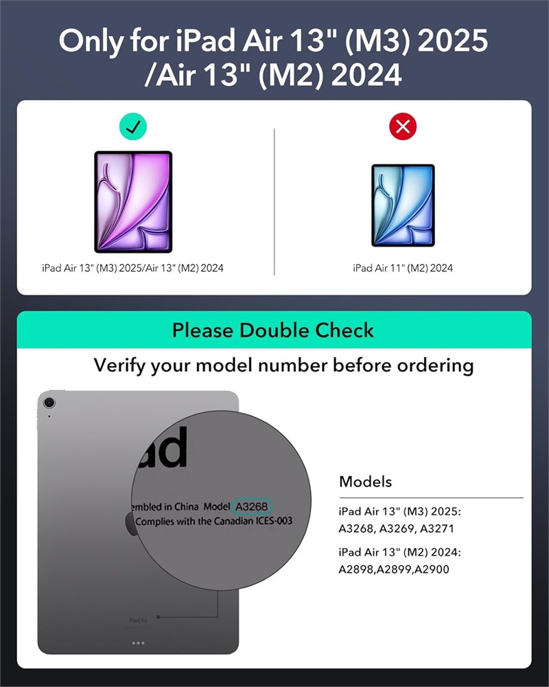 Work from Anywhere: upgrade your iPad to getting-stuff-done mode by transforming it into a portable productivity machine and be ready to work whenever, wherever Quick-Set Magnetic Stand: ultra-strong magnets seamlessly combine case and tablet to let you easily open the floating cantilever stand to the perfect angle for typing or browsing Multiple View Modes: back case detaches for instant hands-on access with full-body protection and can be set up in raised screen view, for better posture during use, and portrait mode, for the perfect way to FaceTime Quick and Easy Navigation: use every millimeter of the extended, ultra-sensitive multi-touch trackpad to tap, pinch, and swipe with perfect precision and navigate your iPad in a whole new way Compatibility: only for iPad Air 13 (M3/M2, 2025/2024); models A2898, A2899