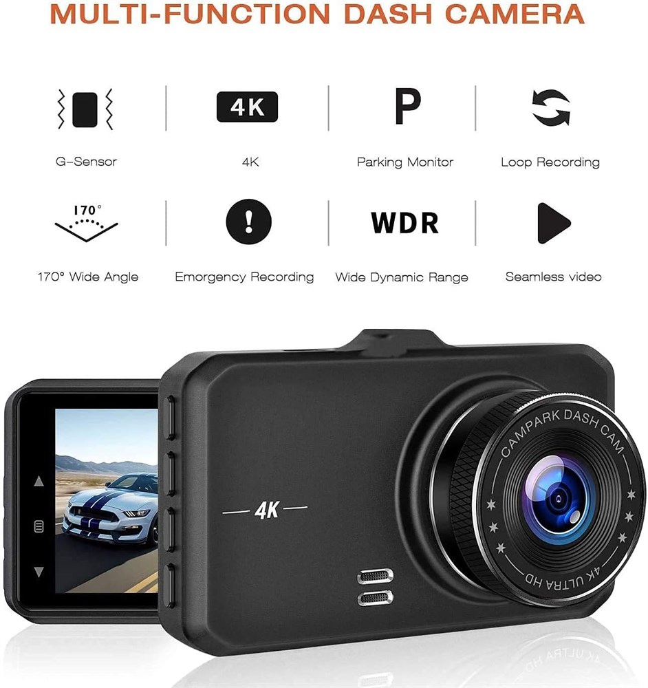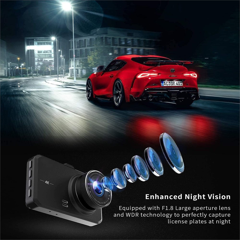 4K Dash Cam Front with 170 Wide Lens - Capture ultra-clear 4K footage with this front dashcam featuring a 170 wide-angle view. Read license plates and road signs effortlessly. Advanced car camera dash cam technology preserves every detail for commutes and road trips. Advanced Night Vision & Smart Screensaver Capture crucial evidence in the darkest conditions with this night vision camera after dark. The screen saver enables recording even with the display off, eliminating distractions. This car security camera ensures you get clear nighttime footage while keeping your focus on the road, making night driving safer and more secure. Dash Cams with Parking Monitor & G-Sensor Protection Rest easy knowing your vehicle is protected even when parked. The built-in G-sensor automatically detects impacts and locks footage as evidence, while the reliable dash cam with parking mode continuously monitors your vehicle's surroundings. This car dash camera provides complete security. Seamless Loop Recording with Audio Capture This dashboard camera never miss a moment with continuous loop recording that automatically overwrites old footage. The built-in microphone captures clear audio, while the emergency lock preserves crucial evidence during incidents. This dash camera for cars ensures all important moments are securely saved. Easy Installation Get started in minutes with this mini dash cam designed for simple setup. The compact dash cam mini features plug-and-play operation.
