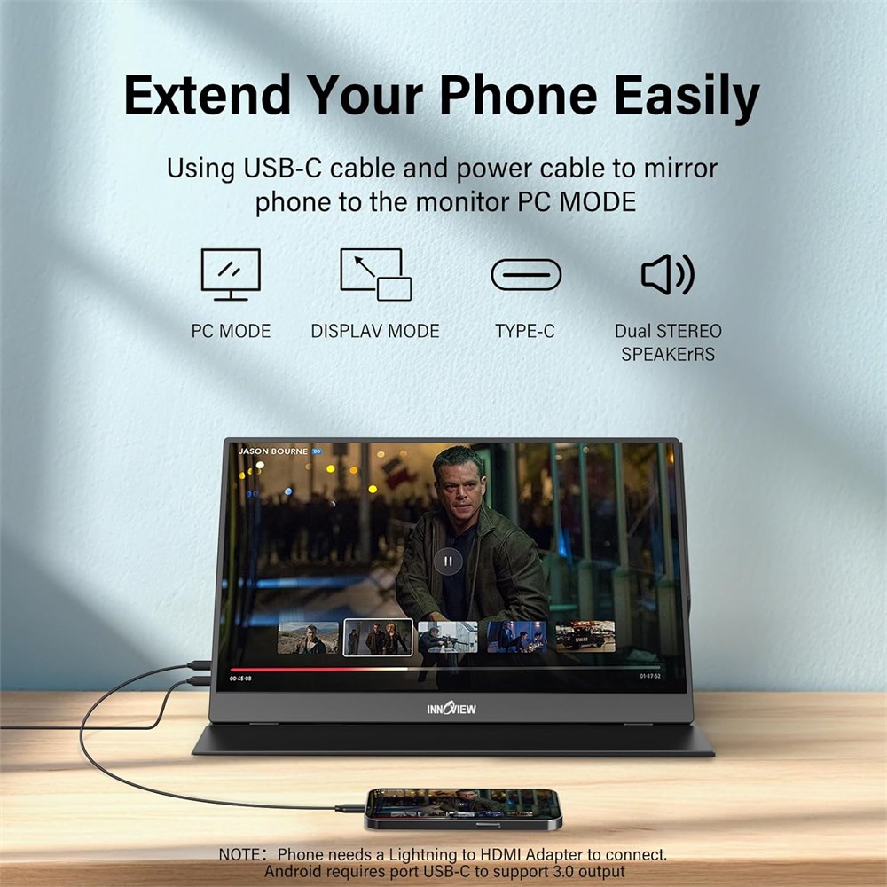 Moniteur portable pour ordinateur portable L'extension d' cran InnoView pour ordinateur portable n'a pas besoin d'application ni de pilotes 39,6 cm est une taille plus adapt e pour les voyages ou le travail distance. Convient pour les voyageurs, les tudiants, les joueurs, les ing nieurs et les cols blancs pour connecter un ordinateur portable HP, un ordinateur portable Lenovo, un ordinateur portable Dell, un ordinateur portable Asus, un MacBook, un iPhone, une console de jeu, une tablette, une PS, une Xbox, etc. L' cran de l'ordinateur portable peut tendre la zone de visualisation et tre plus efficace lorsque vous jouez des jeux, travaillez, r unissez et tudiez Plug and Play Le moniteur de voyage pour ordinateur portable fournit 2 ports de type C complets et 1 port HDMI pour connecter la plupart des appareils. Un seul c ble USB-C est n cessaire pour connecter l' cran externe l'ordinateur, et il prend en charge la charge invers e de puissance pass-through. Remarque : votre appareil doit prendre en charge Thunderbolt 3.0/4.0 ou USB 3.1 Type-C DP ALT-MODE. Sinon, vous pouvez vous connecter via HDMI et c ble d'alimentation (non inclus dans le colis) Moniteur IPS FHD USB C : cran portable de 15,6 pouces avec une r solution de 1920 x 1080p, fabriqu en cran IPS A+, prend en charge un angle de vision complet de 178 , peut pr senter des couleurs pr cises et vives. Combin es avec HDR, les images et les vid os pr sentent des couleurs r alistes et des d tails tonnants. La faible lumi re bleue peut r duire efficacement les dommages caus s par la lumi re bleue, pas de scintillement, protection des yeux, ce qui vous permet de travailler et d'effectuer plusieurs t ches en m me temps Coque et support polyvalent quip d'une coque de protection intelligente anti-rayures fabriqu e en cuir synth tique durable, il peut galement tre utilis comme support lorsque vous travaillez. Deux rainures sont utilis es pour r gler l'angle et fixer le moniteur externe. Il peut galement fournir une protection compl te pour le moniteur 1080p lorsque vous sortez ou voyagez, adapt pour mettre dans un sac dos pour viter de serrer. Modes paysage et portrait en option, conomisez plus d'espace sur le bureau Achat sans soucis tant donn que la puissance de sortie de chaque appareil est diff rente, l' cran peut clignoter ou red marrer. Vous pouvez alimenter le moniteur d'ordinateur portable pour le r soudre. Fournissez une politique de retour de 30 jours et une garantie de 18 mois ( l'exception des dommages caus s par la force ext rieure). Si vous avez des pr occupations, veuillez nous le faire savoir (affich au dos de l' cran)