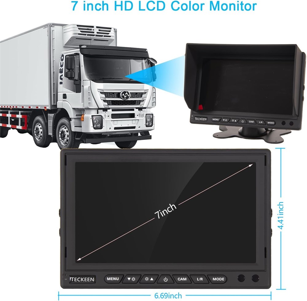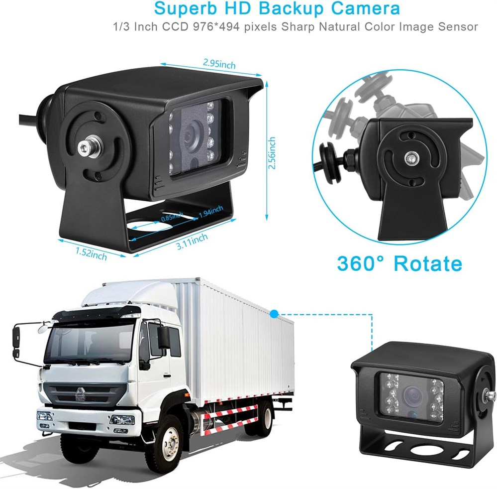 Stable Sharp Image Truck Backup Camera is 1/3" Camera,real nature color image without color deviation. Aewsome Night Vision HD image sensor displayed a super sharp image, it will be able to see up to 50ft even in complete darkness! This night vision will be even without any ambient light at all. Easy Installation It comes with compelet whole kit and spare parts, easy runing cable and screw. Waterproof and Long Lifetime Top waterproof rating IP69K makes the camera will work fine in all weather conditions. Guideline and Flip Image The monitor comes with Guideline on/off function, it can adjust the Guideline with or without, Flip screen function can help you adjust the image of the camera freely.