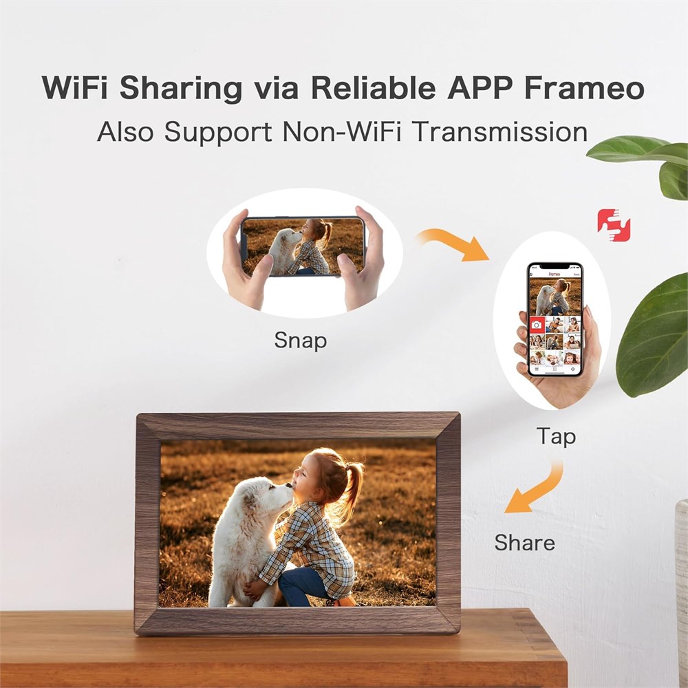 Partage instantan via l'application Frameo ; connectez votre cadre au Wi-Fi et partagez des photos et des vid os (max. 15 s) rapidement via une application fiable Frameo vers notre cadre photo lectronique depuis n'importe o , en priv et en toute s curit , sans limitation du nombre de membres. Pour ceux qui ont d j un cadre num rique Frameo, pas besoin de t l charger une autre application. Il dispose de 32 Go de m moire int gr e et prend en charge jusqu' 32 Go de stockage externe, vous permettant de partager plus de 50 000 photos. Vous pouvez galement transf rer via un stockage externe ou via un ordinateur, pas besoin de Wi-Fi Un cadeau d'amour ; toujours la recherche du cadeau parfait pour vos proches ? Que vous ayez besoin de cadeaux d'anniversaire pour les hommes, de cadeaux pour papa, de cadeaux de mariage, de cadeaux pour une nouvelle maison, de cadeaux de retraite ou de cadeaux pour maman, m me des cadeaux pour les papas de chiens. Pastigio a ce qu'il vous faut. Notre cadre num rique est un excellent cadeau pour les hommes et les femmes, maman et papa. C'est plus qu'un simple appareil, c'est un cadeau sinc re d'amour et de souvenirs. Le pr sent lectronique est galement livr dans un l gant emballage, ce qui en fait un cadeau charmant offrir cran tactile IPS HD ; cadre photo num rique Pastigio quip d'un panneau num rique de 10,1 pouces avec HD 1280 x 800 pixels pour des couleurs vives et des d tails exquis. Configurez et visualisez vos photos facilement avec l' cran tactile. Avec le cadre photo num rique Wi-Fi, vous pouvez voir les poils duveteux de votre adorable animal de compagnie, voir les taches de rousseur juv niles sur les visages souriants, voir comment chaque tout petit d tail construit votre vie color e. Plusieurs formats d'image sont pris en charge, JPG/JPEG/BMP/PNG, et le format vid o par MP4 Fonctionnalit s amusantes : utilisez la fonction React pour envoyer des mojis vos proches en temps r el. Faites-leur savoir comment vous aimez l'image qu'ils ont envoy e sur votre cadre. Ce cadre num rique WiFi peut galement s lectionner la partie principale et ajuster la photo pour remplir le cadre, faire pivoter automatiquement l'image en mode portrait ou paysage, et r gler la luminosit et le volume comme vous le souhaitez. Pour des raisons cologiques, vous pouvez d finir un mode veille dans le cadre photo num rique Pastigio Il s' teint automatiquement lorsque le mode veille est allum Soutien de marque de confiance ; chez Pastigio, nous sommes fiers d' tre des fabricants directs, assurant le plus haut contr le de qualit associ au meilleur rapport qualit /prix, sans la marge interm diaire. Nous offrons en toute confiance un support technique auquel vous pouvez acc der tout moment et une assurance qualit . Nous serons responsables de tout d faut de fabrication. Des instructions d'utilisation compl tes et conviviales seront fournies dans le colis. Si vous rencontrez des probl mes, notre quipe d'assistance est disponible pour vous aider rapidement Prend en charge la transmission sans WiFi; Si le WiFi et les applications semblent trop compliqu s pour vous ou votre famille, ne vous inqui tez pas! Notre cadre num rique prend en charge la transmission sans WiFi. Vous pouvez facilement t l charger des photos via une carte TF/cl USB (prend en charge uniquement le format FAT32), ou via un ordinateur (c ble USB n cessaire). Cette fonctionnalit est conviviale pour les personnes g es peu famili res avec l' lectronique ou les t l chargements d'applications, leur permettant de profiter rapidement du cadre. De plus, la carte TF ou la cl USB peut tre utilis e directement comme stockage externe pour le cadre Partenaire officiel de l'application Frameo ; En tant que partenaire officiel de l'application Frameo, nous vous apportons l'application de cadre num rique la plus fiable et prouv e disponible. Avec un historique de fiabilit in gal e, Frameo prend en charge les t l chargements GRATUITS, vous assurant une stabilit sans vous soucier des probl mes du syst me d'application. En troite collaboration avec Frameo, nous continuons optimiser nos produits pour r pondre vos besoins en constante volution. Nous ajoutons constamment des fonctionnalit s int ressantes Frameo avec l'aide de nos utilisateurs.