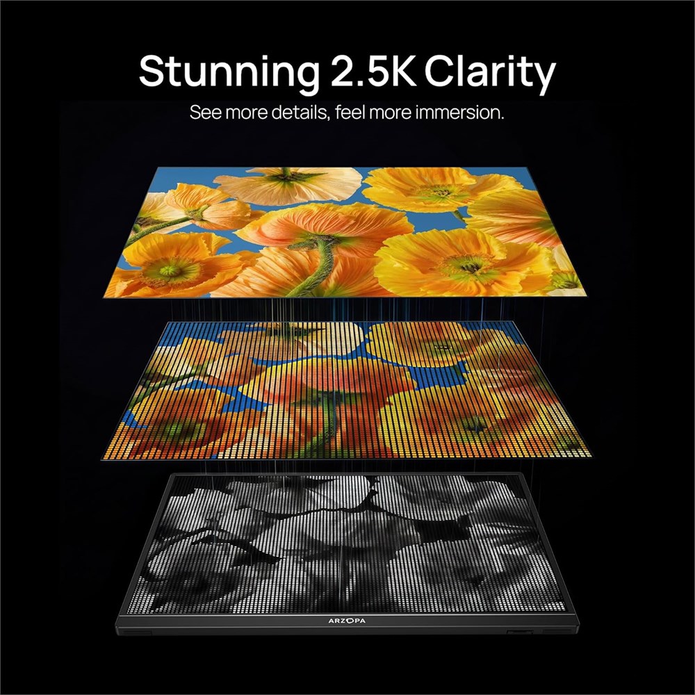 cran QHD 2.5K Brillant Profitez de couleurs vibrantes, de noirs profonds et d images d taill es avec notre moniteur haute r solution de 2560*1600. Profitez de couleurs r alistes avec un rapport de contraste de 1200:1 et une luminosit de 500 nits. Affichage Premium 16:10 Obtenez plus d espace d cran avec le format 16:10. Lisez plus de texte, ayez plus d'espace de travail et affichez plus de cellules verticalement tout en travaillant sur des feuilles de calcul ou en codant. L ger mais robuste Notre moniteur est l ger avec seulement 1,46 lb, ce qui le rend parfait pour une utilisation en d placement. Il mesure 36,5 x 26,8 x 1 cm. Compatible avec tous vos appareils Connectez notre moniteur portable votre PC, consoles de jeu, MacBook, appareils Android, appareils Apple ou tablettes en utilisant les entr es USB C ou HDMI. Plug and Play efficace S'adapte instantan ment n'importe quel appareil ou m thode de connectivit . D marrez une r union sur votre t l phone ou ordinateur portable et d placez-la sans probl me vers le moniteur sans aucun d calage ou probl me de connexion.