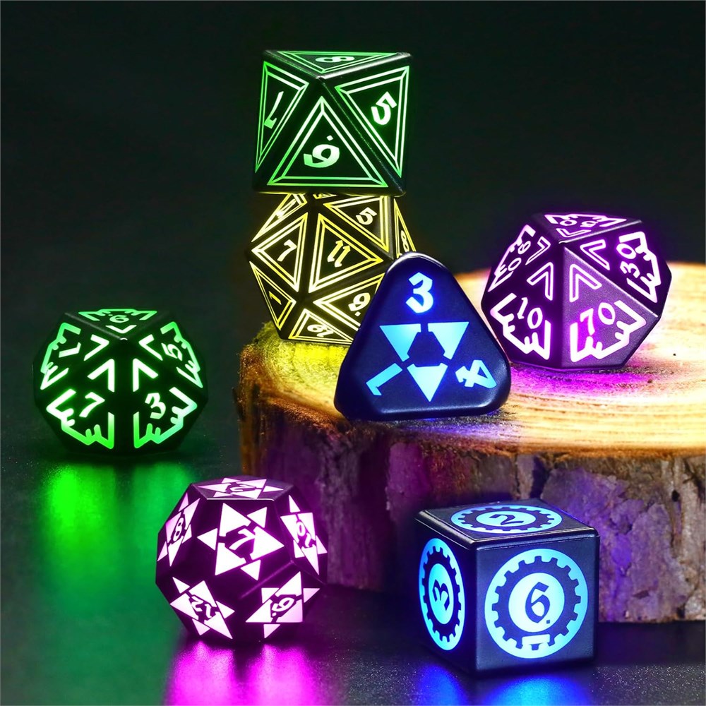 D s de chargement RVB : les d s DND disposent d'un syst me de charge am lior Il suffit de placer la face avec le num ro le plus lev vers le haut dans le bo tier de charge et de se connecter via le port de type C. Fini les probl mes de charge par point de contact des d s LED traditionnels D s rechargeables : Les d s dnd avec des lumi res RGB int gr es mettent environ sept couleurs et clignotement lentement pendant 15 s lors des lancers ou des collisions. Ils mettront une lumi re rouge lors de la charge et deviendront verts lorsqu'ils sont compl tement charg s, visibles l'ext rieur de la bo te de chargement translucide Comment charger : Trouvez le point indent sur le c t , placez-le face vers le bas dans la base. Le c t portant le nombre le plus bas doit tre plac vers le bas la base. Le c t portant le num ro le plus lev doit tre plac vers le haut sur la base. Par exemple : D4 : le chiffre 4 vers le haut. D10 (0-9) : le chiffre 9 face visible Chargement de type C : avec un temps de charge de 3,5 h, ils peuvent l'allumer pendant 6 heures. Veuillez noter qu'en raison du transport cahoteux, les d s seront court d' nergie. Veuillez le charger rapidement apr s r ception Cadeau D&D parfait : cet ensemble de d s de 7 pi ces est livr avec une base de charge, un c ble USB-C, une carte d'instructions et une l gante bo te cadeau. C'est le cadeau parfait pour les amateurs de D&D, id al pour les anniversaires, les f tes et les vacances comme No l, Halloween et Thanksgiving Usage polyvalent : Le jeu de d s poly dres convient divers jeux de r le de plateau, tels que Donjons et Dragons et de nombreux autres jeux bas s sur des d s.