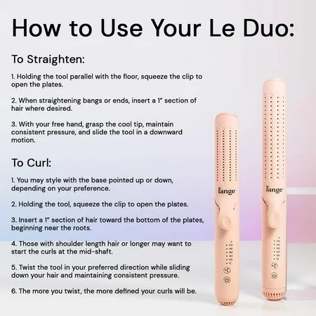 VERSATILITY FOR ALL YOUR FAVORITE LOOKS - Whether you re looking for smooth, sleek strands or beautiful curls and waves, Le Duo Grande lets you achieve it all. STUNNING RESULTS - This easy-to-use styler features longer (5.4 ) floating titanium plates with rounded edges for even heat distribution and crease and snag-free styling, especially mid-length hair or longer. SET IT AND FORGET IT - Adjustable temperature 280 F-430 F means you choose your preferred heat, while the fan and 360 vented airflow instantly cool hair on contact, locking in style and shine. DESIGNED FOR CONVENIENCE - Built-in clip to secure hair for fast and easy styling, while the lightweight, ergonomic overall construction helps make styling a breeze.