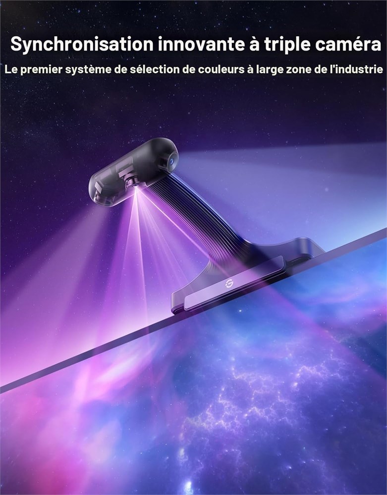 Capacit de capture d'image HDR : Le capteur HDR de Govee TV Backlight 3 Pro fusionne des expositions courtes et longues, garantissant que les sc nes lumineuses conservent les d tails sans surexposition et que les zones sombres restent riches, offrant un chantillonnage pr cis des couleurs et une image de qualit cin matographique R tro clairage TV haute pr cision avec triple cam ra : Le r tro clairage TV tend la zone de s lection des couleurs de 50 % autour des coins en utilisant un syst me de triple objectif, et am liore la pr cision en capturant ind pendamment les couleurs travers plusieurs zones individuellement calibr es sur l' cran de la t l vision Bande TV haute densit avec technologie LuminBlend : Plus lumineuse avec 75 LED/m et perles de lampe RGBWWIC 5-en-1 m langeant blanc froid et blanc chaud. La puce 16 bits int gr e offre des couleurs pr cises et des d grad s plus lisses gr ce un algorithme de m lange de couleurs intelligent Longueur de l'appareil photo compact de 85 mm pour une installation sans probl me : le nouveau petit module d'objectif a t visuellement r duit en taille et s'adapte naturellement la courbe des bords du t l viseur lorsqu'il est install . Le design de suspension gravitationnelle de la cam ra s adapte la plupart des t l viseurs ultra minces Atmosph re correspondant au film avec IA : Un simple appui sur la fonction de filtre IA de Govee permet ces lumi res d extraire la couleur du th me du film ou de la s rie sp cifique, cr ant une exp rience immersive qui correspond au style et l atmosph re du contenu Int gration la maison intelligente : La synchronisation DreamView permet de relier l' clairage avec jusqu' 10 autres lumi res Govee. Observez votre maison alors que tout votre int rieur est baign dans une superbe gamme de couleurs vibrantes. Compatible avec Matter, facile contr ler via l'application, Alexa, HomeKit, etc Compatibilit totale avec tout contenu TV : ce r tro clairage LED peut capturer instantan ment la couleur de n'importe quel cran TV sans probl mes de compatibilit . Utilisez Govee TV Backlight 3 Pro tout en diffusant du contenu, regardez des vid os en ligne, jouez, etc.