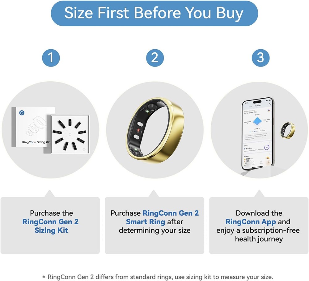 Mesurez avant d acheter : l anneau intelligent RingConn Gen 2 est disponible dans des tailles uniques, diff rentes de celles des autres anneaux de sant . Le kit de mesure RingConn Gen 2 vous aide trouver la taille la plus confortable et la plus pr cise pour votre doigt, vitant ainsi les d sagr ments des retours et des changes en vous assurant que vous choisissez la bonne taille avant l achat. Pas de frais d abonnement : d verrouillez l acc s vie la suite compl te de fonctionnalit s de l application intelligente de suivi de la sant RingConn avec votre anneau intelligent RingConn Gen 2. Faites l exp rience d un suivi continu et en temps r el de la sant et d informations personnalis es Plus qu un simple suivi de la sant : l anneau intelligent RingConn Gen 2 surpasse les fonctions standard de suivi de la sant en suivant non seulement votre activit , votre sommeil et votre stress, mais aussi en prenant en charge les mises jour OTA. Cela garantit des am liorations continues et l ajout de nouvelles fonctionnalit s, pour une exp rience en constante volution et adapt e vos besoins. tanche pour chaque aventure : l anneau intelligent RingConn Gen 2 pr sente une r sistance l eau am lior e allant jusqu 100 m, ce qui le rend parfait pour le port quotidien, les s ances d entra nement et la natation. De plus, RingConn Gen 2 offre une durabilit exceptionnelle et un toucher doux, m me pour les peaux sensibles. Dur e de vie de la batterie plus longue et design ultra fin : RingConn Gen 2 offre une autonomie de 10 12 jours, ce qui vous permet de suivre votre rythme de vie. La dur e de vie de la batterie varie selon la taille de l anneau : les tailles plus grandes (12 14) peuvent durer jusqu 12 jours. Associ l tui de recharge intelligent, il peut d passer 150 jours. Le design actualis est d sormais plus fin, plus l ger et plus confortable avec un meilleur ajustement que jamais si l ger que vous le remarquerez peine. Contenu : 1 anneau intelligent RingConn, 1 tui de recharge, 1 c ble USB-C vers USB-C de 1 m, 1 manuel de l utilisateur (fran ais non garanti).