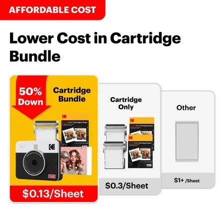 Two Photo Types: It is possible to print both bordered and borderless pictures with the Kodak Mini Shot 3 Retro photo printer. With this instant camera, you can create lasting memories by writing down your memories in the border type. You can print the borderless type of photo if you want to have them in a larger size. Low Photo Cost: Why pay more to print? Printing has never been easier with our Kodak Mini Shot 3 Retro instant digital camera. Photos are even half the cost if purchased in an instant digital camera bundle! Superior Photo Quality: The Kodak Mini Shot 3 Retro utilizes 4PASS technology, which allows you to print flawless photos in just a few seconds. As the photos are printed on layers of color and laminated, they are protected against fingerprints and water. Photos last over a 100 years! Instant Camera + Photo Printer: The Kodak Mini Shot 3 Retro is a digital camera with a built-in photo printer, so you can print your images or cancel them after you have taken them. With this instant digital camera, you can also print 3x3" photos directly from the gallery of your mobile device via Bluetooth. Kodak Mini Shot 3 Retro is compatible with Apple iPhone, iPad & Android devices. Superior Photo Quality: The Kodak Mini Shot 3 Retro utilizes 4PASS technology, which allows you to print flawless photos in just a few seconds. As the photos are printed on layers of color and laminated, they are protected against fingerprints and water. Photos last over a 100 years! Kodak App: Download the KODAK Photo Printer application and print from anywhere at any time. With fun decorative features such as beauty, filters, frames, and more, you can use the app to express your photos. Our app will do the rest of the work for you!